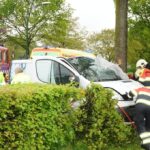 De brandweer heeft de vrouw uit haar auto moeten bevrijden waarna ze met spoed is over gebracht naar het ziekenhuis.