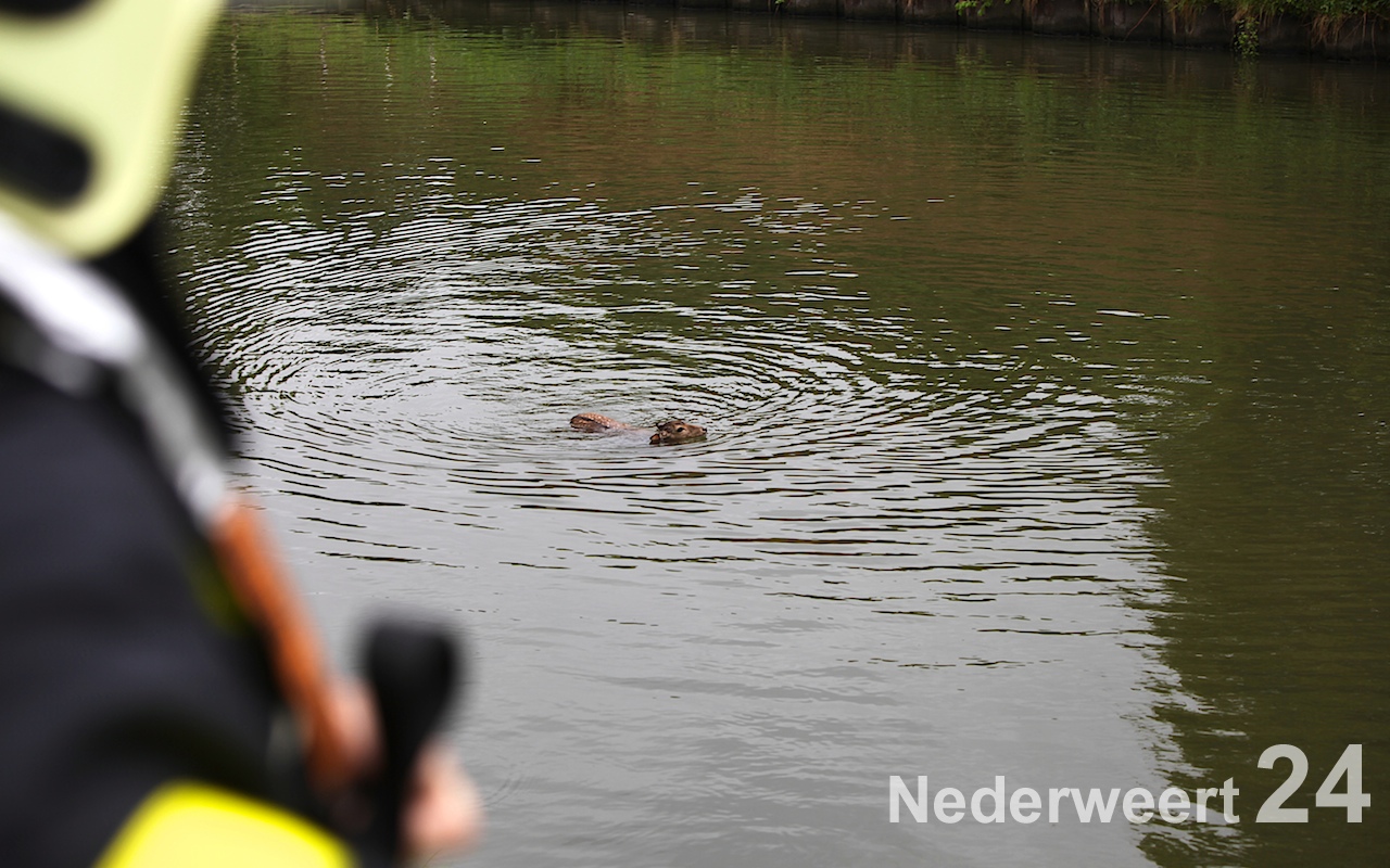 De brandweer van Nederweert werd met boot opgeroepen maar nog voordat de boot bij het dier kon komen was het hert verdronken.