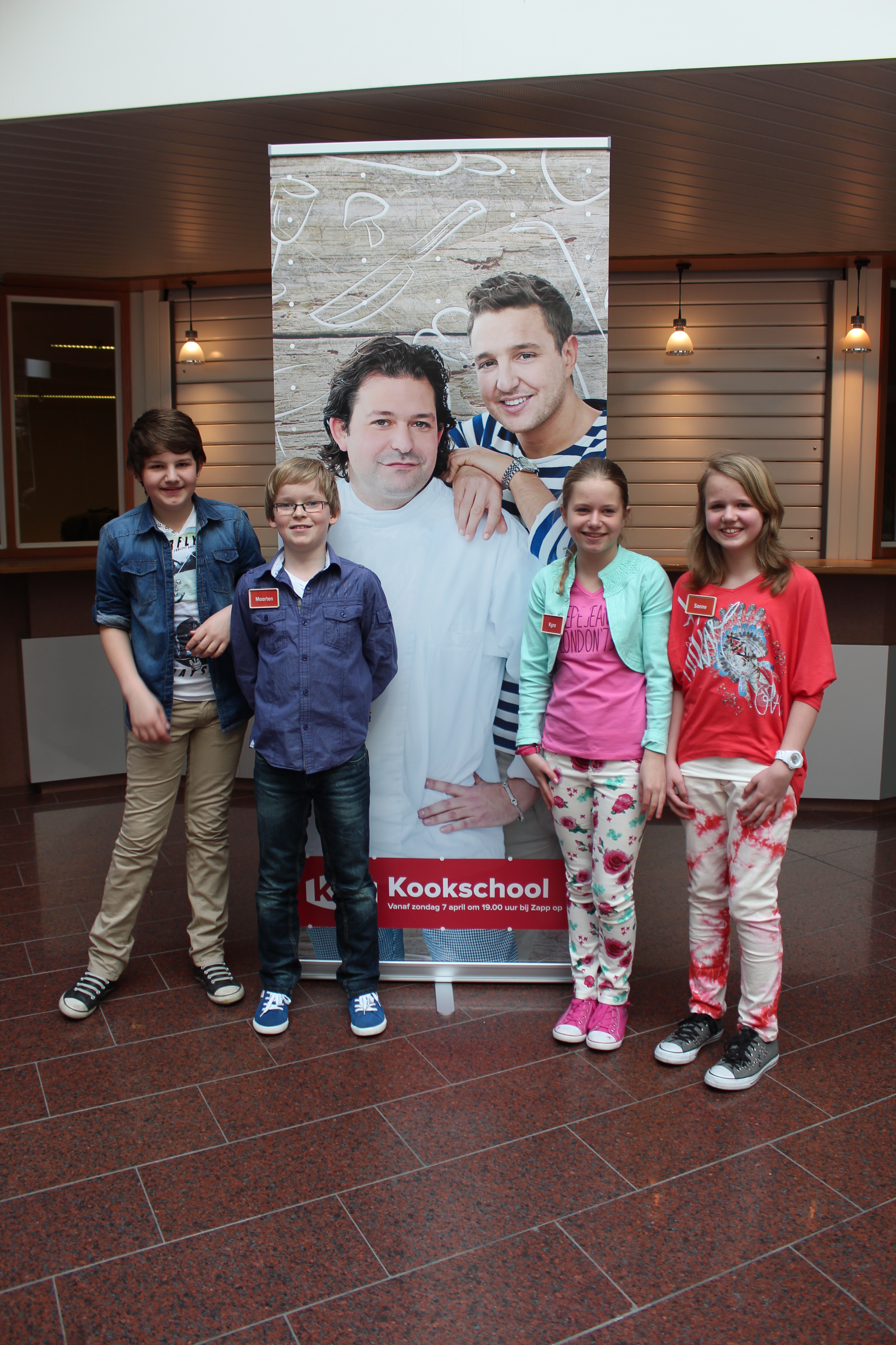 Op maandag 8 april werden Kyra, Maarten, Sanne en Roel samen met hun klasgenootjes opgehaald met de bus om richting Hilversum te gaan. Daar zouden de opnames plaatsvinden van KRO’s Kookschool. Een kookwedstrijd tussen basisscholen.