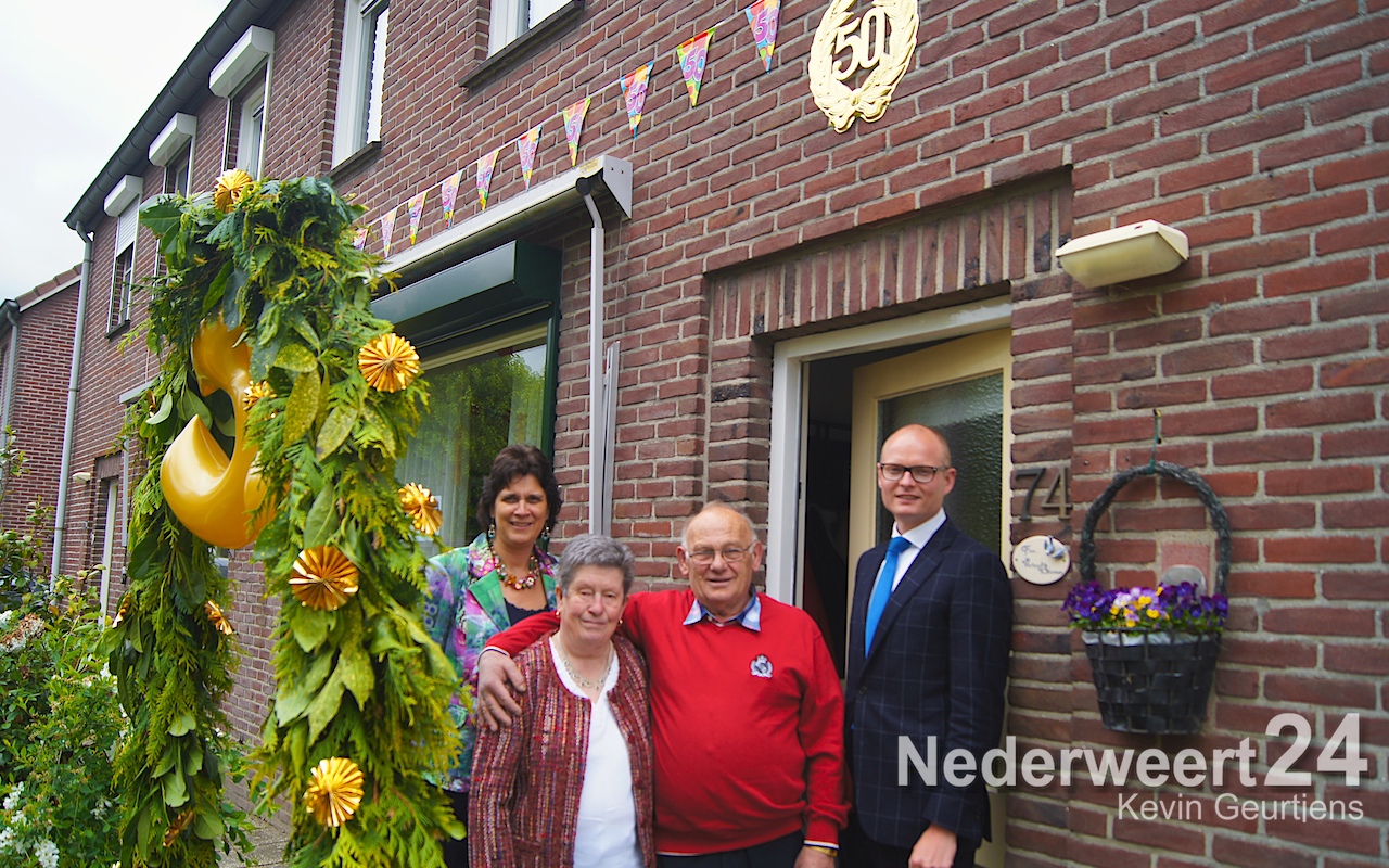 Gouden Huwelijk Familie Verheijen OspelAfgelopen maandag waren Tjeu Verheijen en Wies Verheijen-Bloemers precies 50 jaar getrouwd. Namens de gemeente Nederweert hebben wethouders Hubert Mackus en René Wernink de felicitaties namens de gemeente overgebracht.