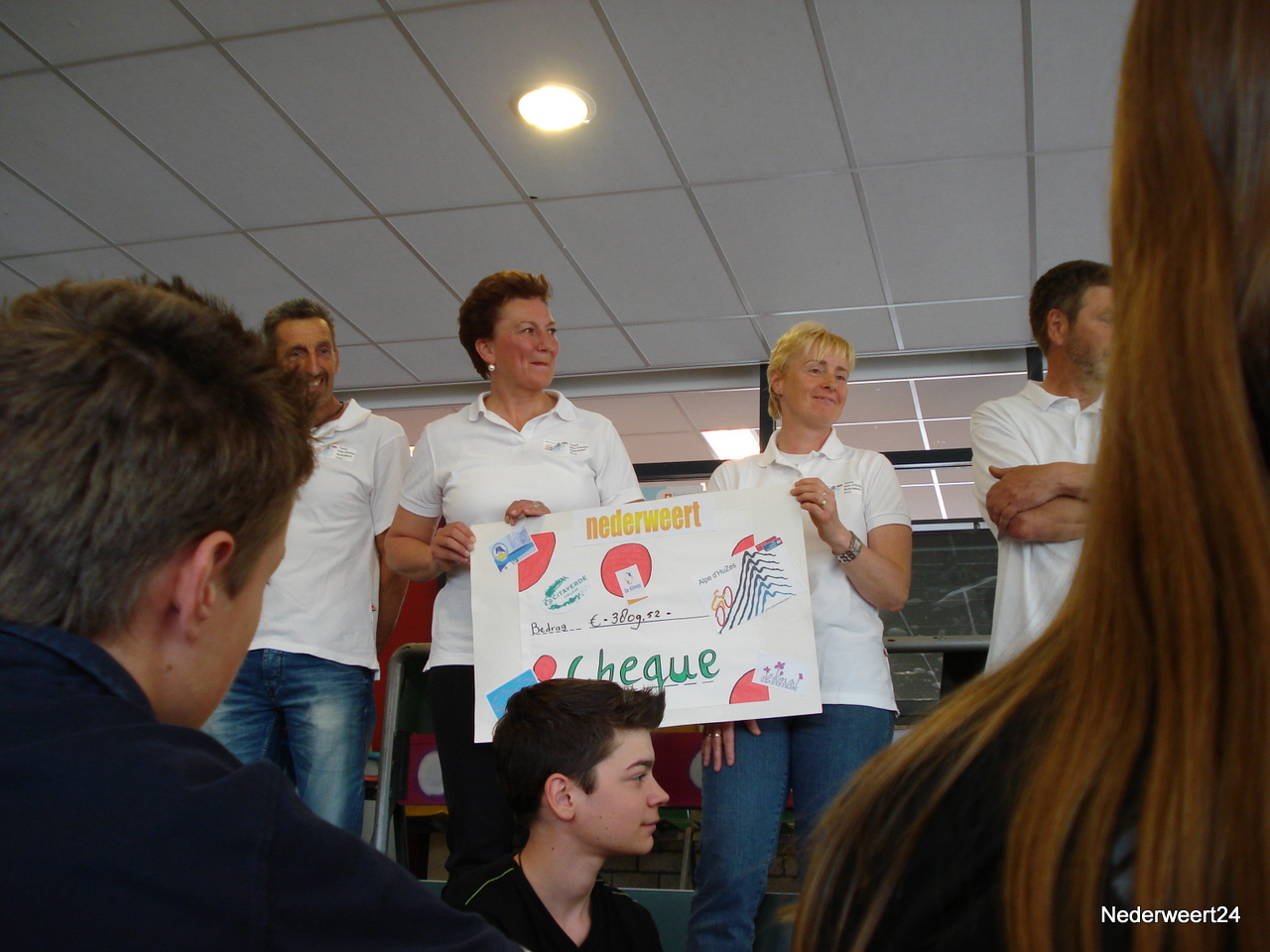 Op vrijdag 24 mei overhandigden leerlingen van het Citaverde College en het basisonderwijs in Nederweert de opbrengst van de sponsormolentocht aan burgemeester Evers. In de aula van het Citaverde College kwamen leerlingen, deelnemers aan Alpe d’Huzes, de burgemeester en een afvaardiging van het Citaverde college bij elkaar om de cheque te overhandigen. De totale opbrengst van deze actie is uitgekomen op € 3809.52. Het bedrag komt ten goede aan de actie Alpe d’Huzes. Na bekendmaking van dit geweldige bedrag klonk er groot applaus uit de zaal.