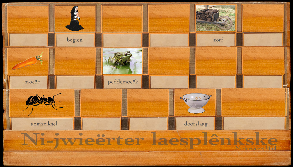 ’t Es neteurlik onmeugelik um hî-j alles over oôs Ni-jwieërts dialect oette deuk te doon. Daorum haaje vae gedachtj úch ‘s aan ’t wêrk te zette. Asje oppe lînk hî-jônger kliktj dan huuërdje ‘n geluidsfragmênt. Perbeertj det ‘s um te zette nao de Ni-jwieërter schriefwies, oetgaondje vanne now Wieërtlandse spelling.