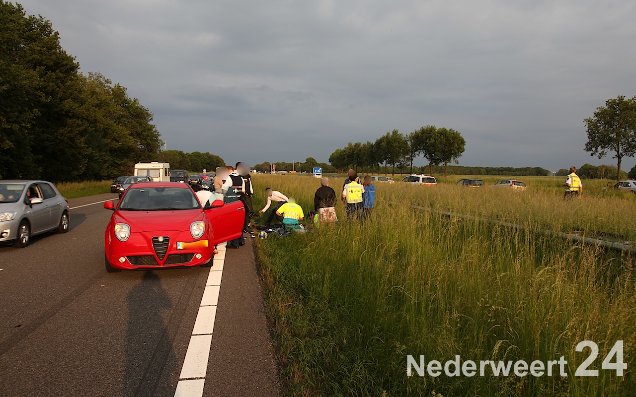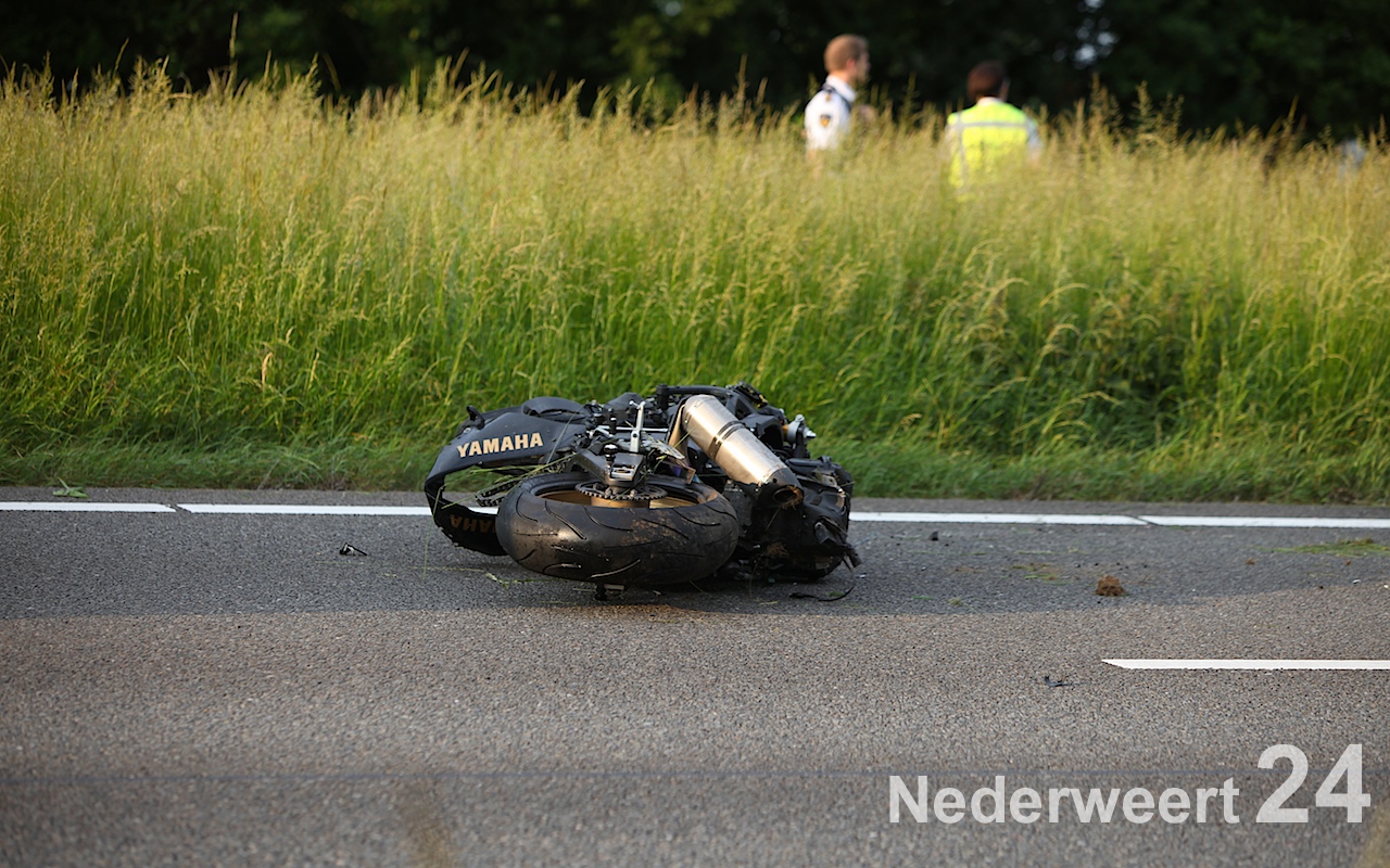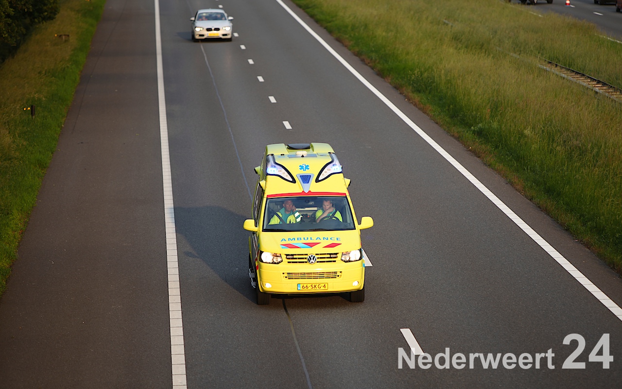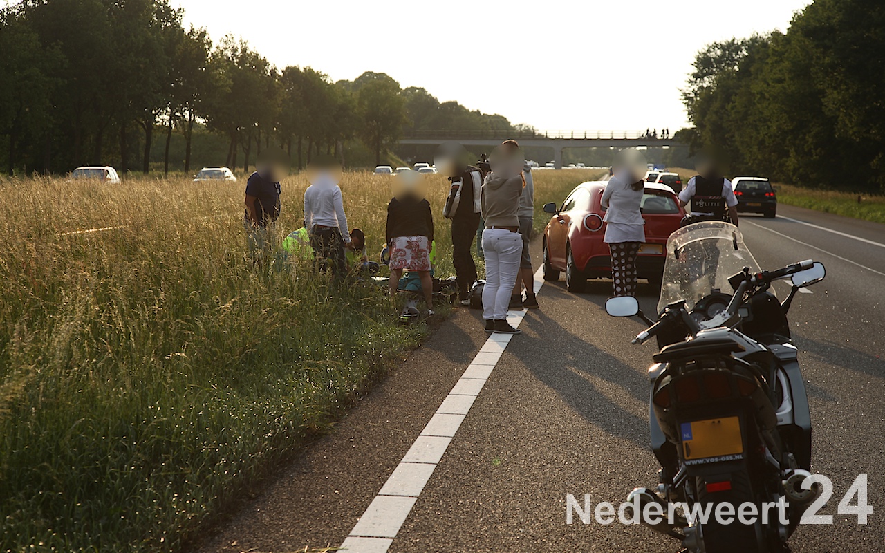 Een motorrijder is zondagavond rond de klok van acht uur hard onderuitgegaan op de A2 ter hoogte van het AC restaurant bij Nederweert.