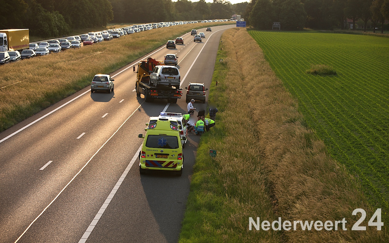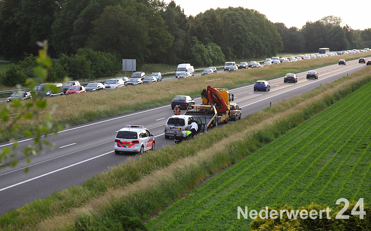 Zowel richting Maastricht als richting Eindhoven stond een lange file omdat aan beide zijde maar één rijstrook beschikbaar is. De politie gaat de oorzaak van het ongeval onderzoeken.