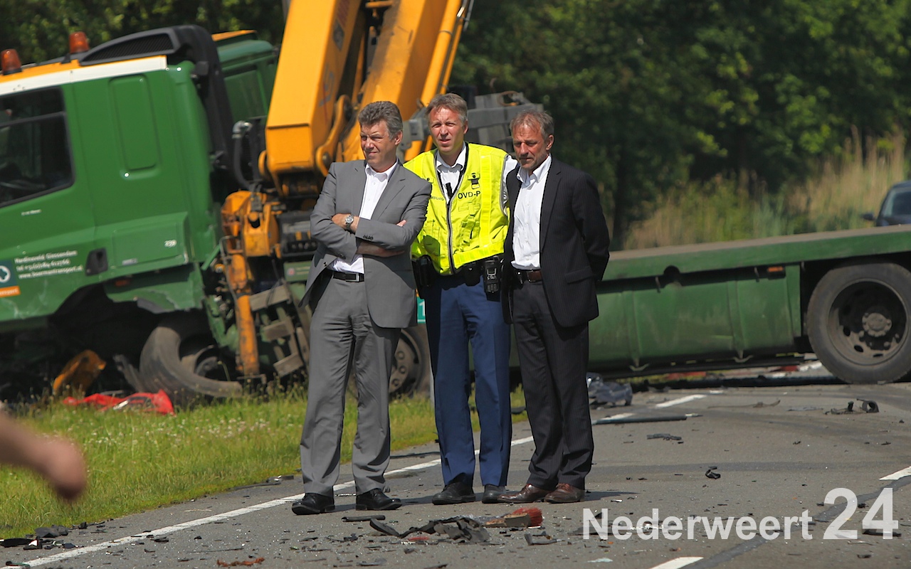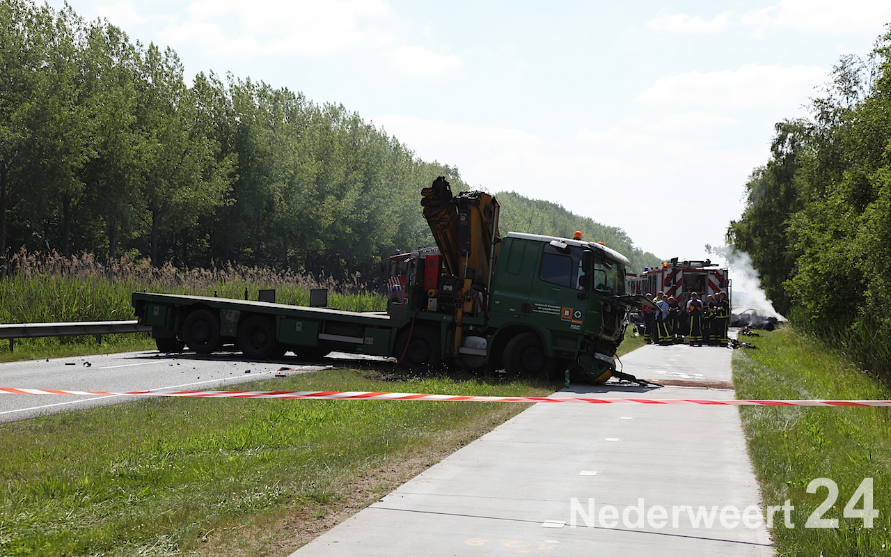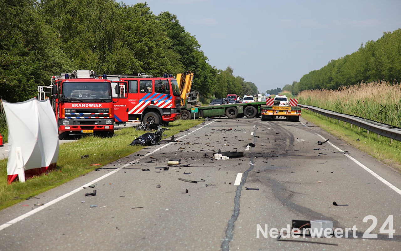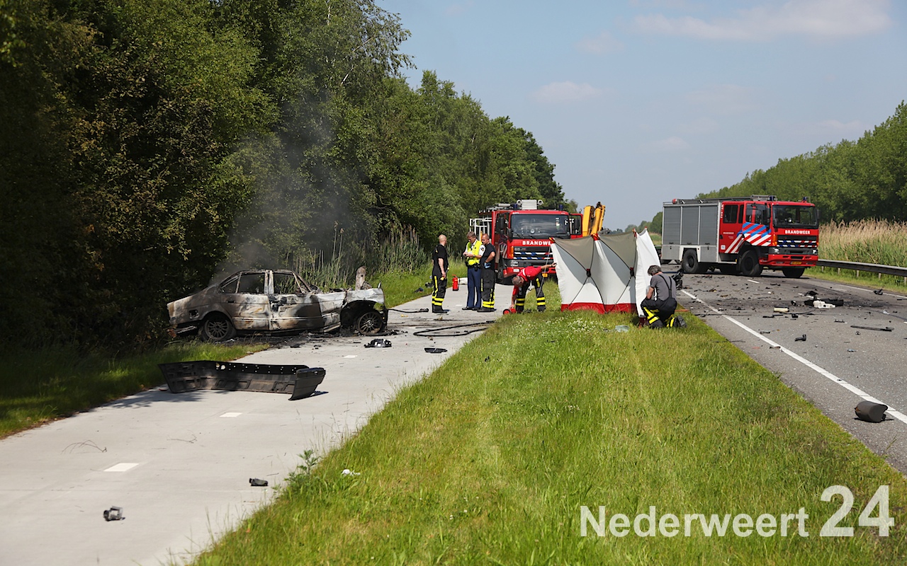 Op deze lange weg tussen Weert en de grens met België is een personenauto op de verkeerde weghelft terecht gekomen waardoor er een aanrijding volgde met een vrachtwagen. Na de aanrijding vloog de personenauto in brand. De bestuurder van de personenauto zat nog in zijn auto en is ter plaatse overleden. De ravage was enorm. De politie onderzoekt de toedracht van dit ongeluk.