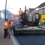 Met het aanbrengen van de asfalt toplaag komt de reconstructie van de Brugstraat ook bijna ten einde. Morgen moet nog de rode asfalt voor de fietsopstelstrook voor de stoplichten bij de brug worden aangebracht.