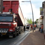 Vanavond werd in de Brugstraat in Nederweert de asfalt toplaag aangebracht. De hele Brugstraat was vanaf Aan Vijftien tot aan Staat afgesloten voor alle verkeer. Om de overlast voor ondernemers en bewoners te beperken werd pas om 18.00 uur vanavond met dit werk begonnen.