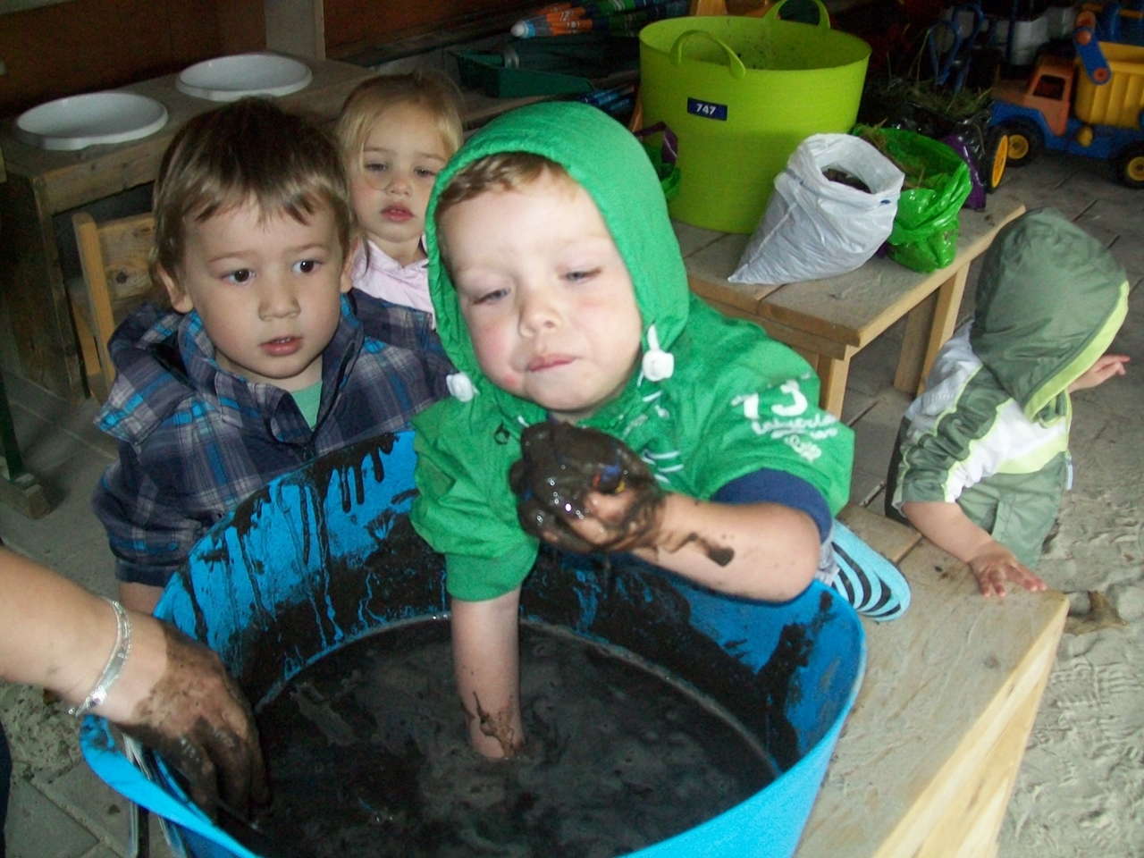 Het was voor ieder kind een unieke beleving; het ene kind ging meteen op ontdekking uit en met beide handen in de modder, een ander kind deed het voorzichtig met een handje en weer een ander kindje genoot ervan door alleen maar te kijken. Het is gewoon leuk om te zien dat ieder kind het op zijn eigen manier beleeft en er van geniet.