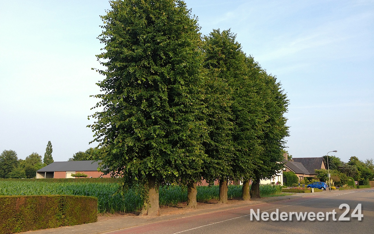 De vijf lindes langs de straat Eind in Nederweert-Eind hebben een robuuste uitstraling. Weer en wind lijken ze aan te kunnen.