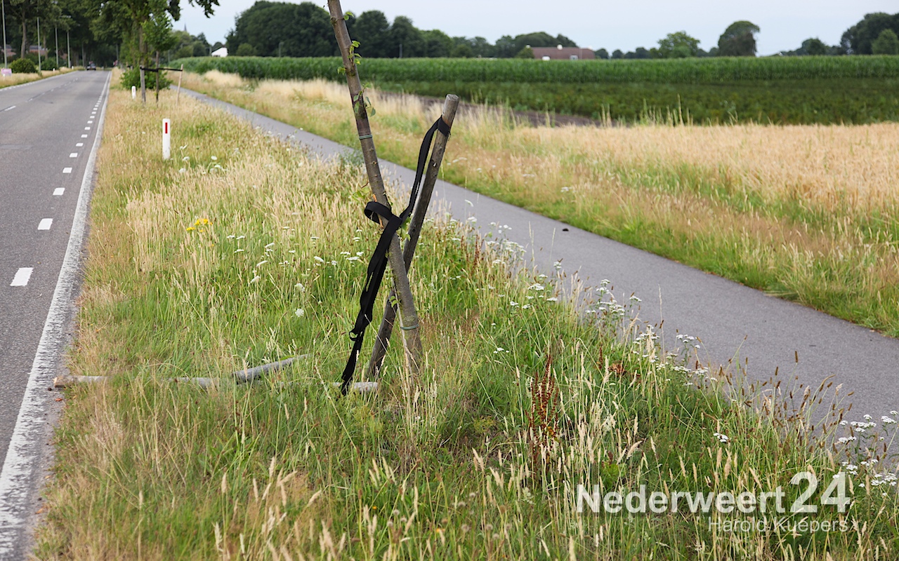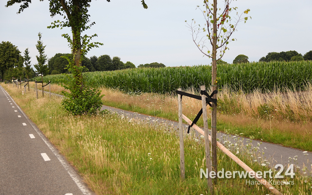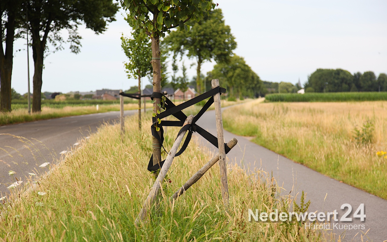 Schade door vernieling jonge aanplant aan de Ospelseweg NederweertOp de Ospelseweg van Nederweert naar Ospel zijn vernielingen aangericht aan de jong aangeplante bomen die daar staan.