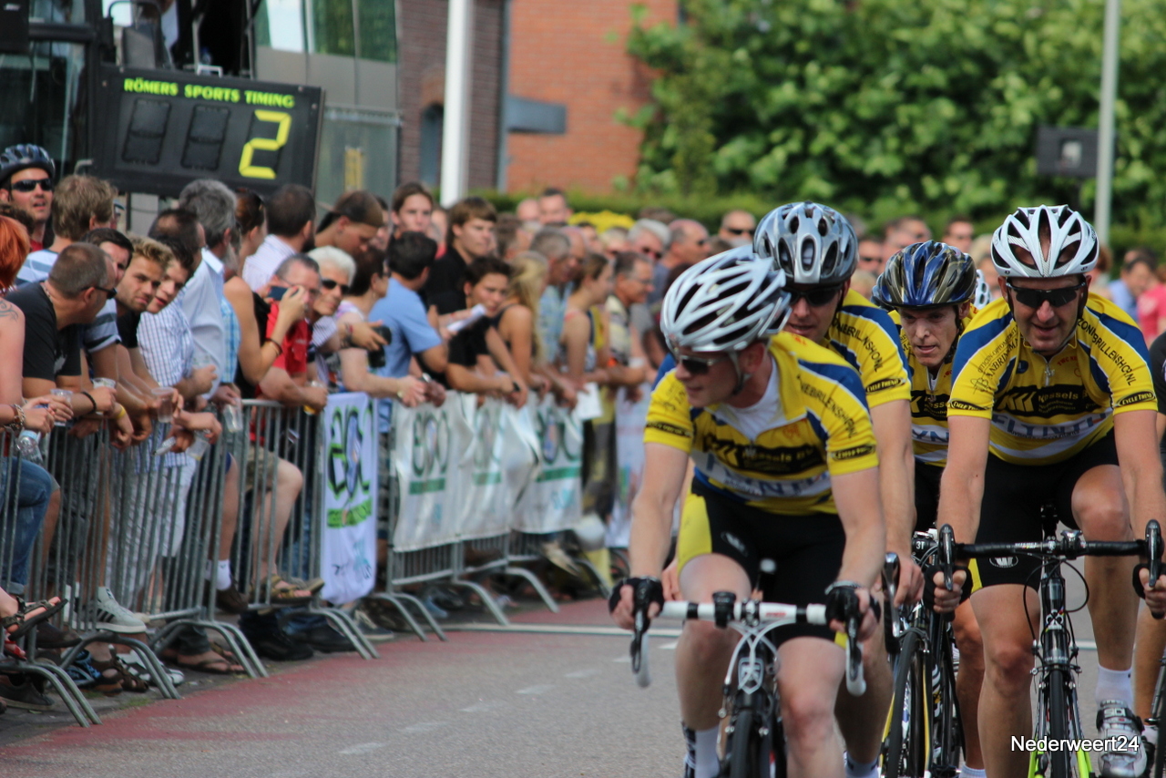 Om half 7 gingen de echte mannen van start voor het criterium van Ospel. Een wedstrijd over 35 rondes met om de 5 rondes een sprint om de bonussen. Een spannende strijd waarin meerdere malen een kopgroep probeerde weg te rijden maar meer dan 20 seconde voorsprong gaf het peloton niet. In de laatste fase van de wedstrijd kwam alles weer bij elkaar en Ospel maakte zich op voor een massasprint. In de sprint kwamen een aantal renners flink ten val en eindigde de wedstrijd in mineur. Opgeroepen hulpdiensten zorgden voor de renners en het publiek werd naar de tent verwezen waar nog tot in de late uurtjes werd gefeest.