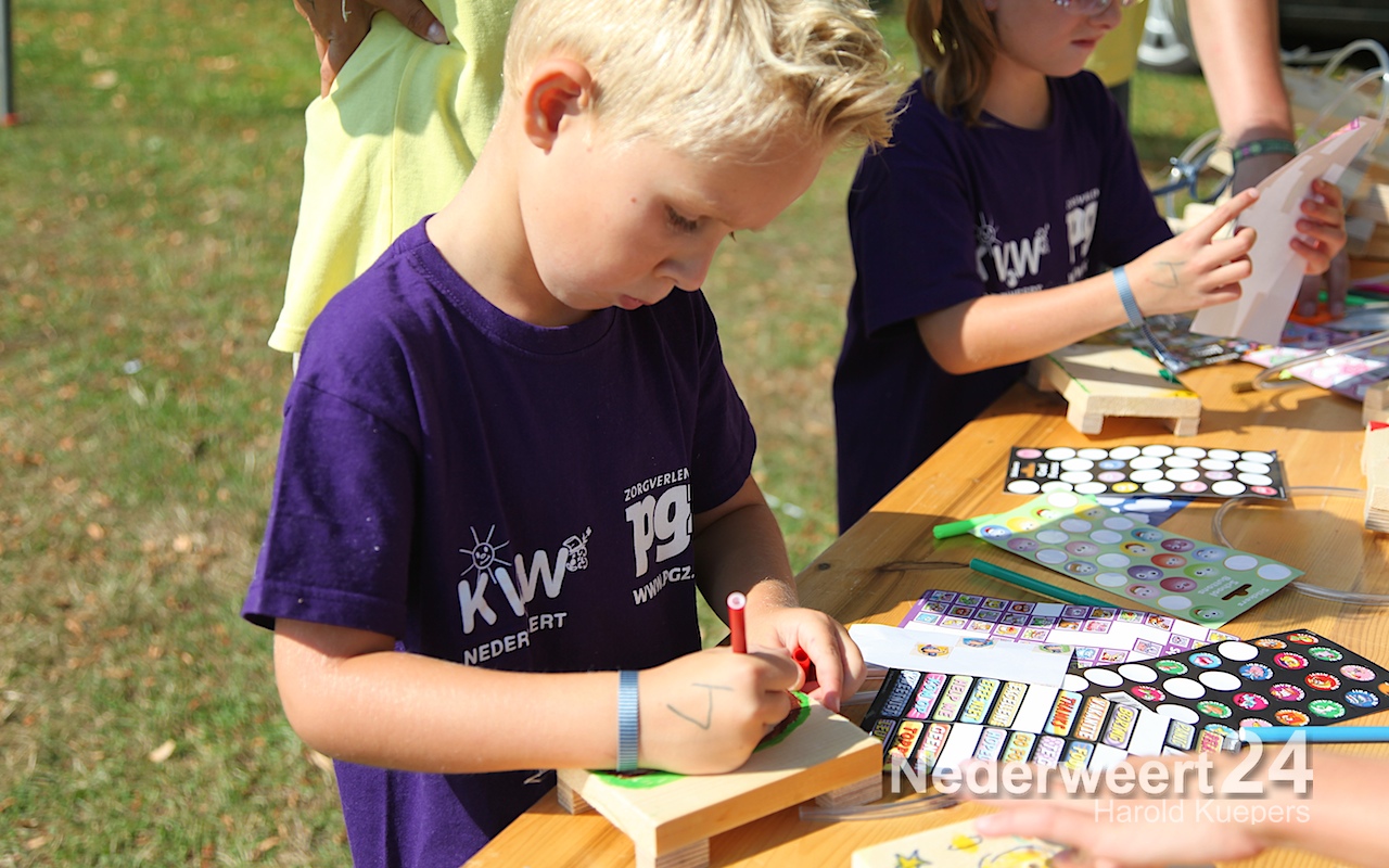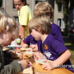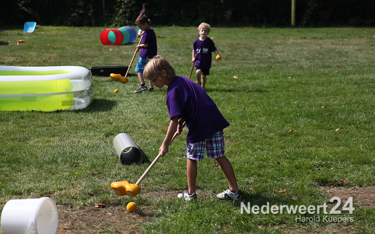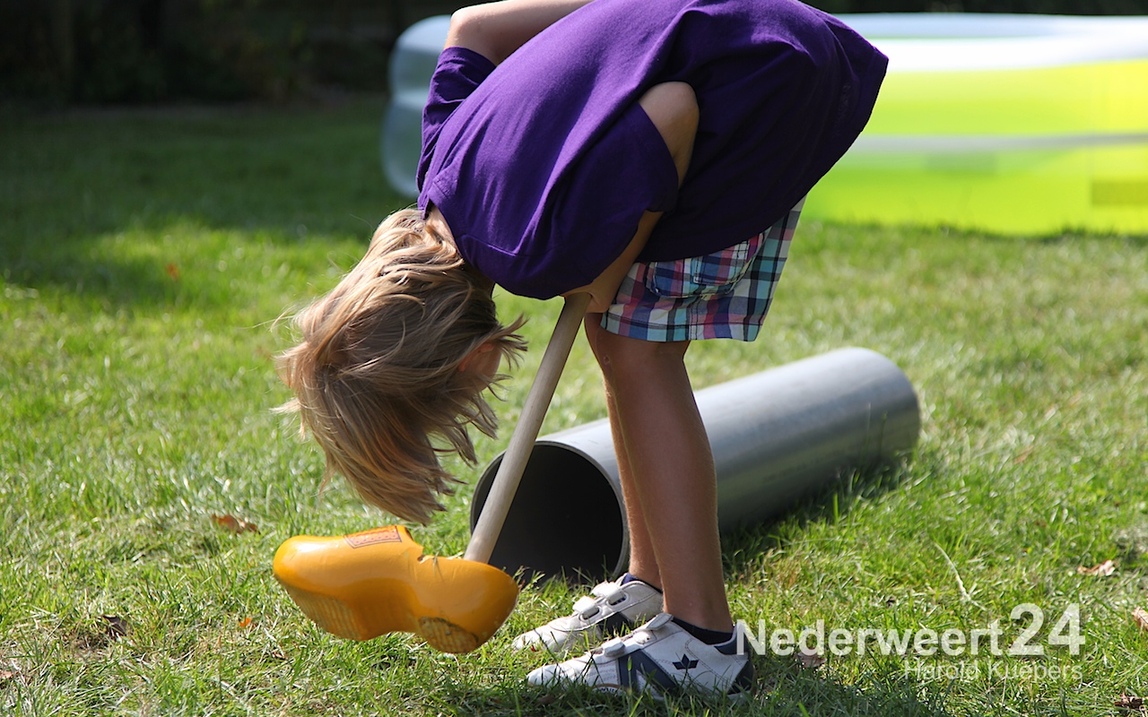 Ook konden de kinderen hun eigen “raket” in elkaar knutselen en mochten ze met water spelen. Een parcours “klompengolf” mocht natuurlijk niet ontbreken in onze plattelands gemeente Nederweert.