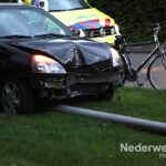 Zondagavond heeft een auto een lantaarnpaal geramd op de St. Luciastraat op Boshoven in Weert.