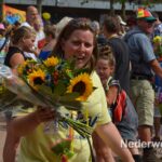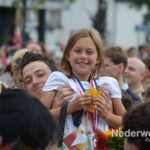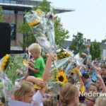 Zaterdagmiddag zijn ruim 700 wandelaars met bloemen en muziek onthaald op het Raadhuisplein in Nederweert.