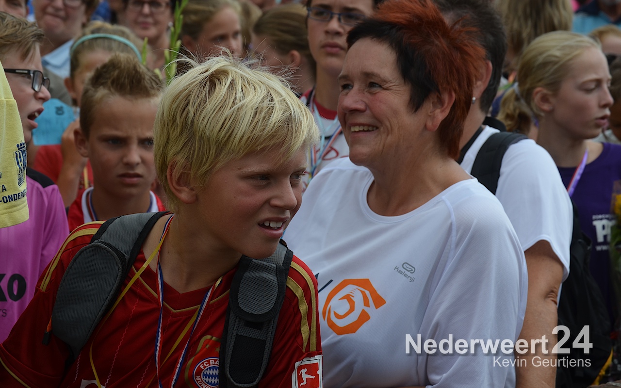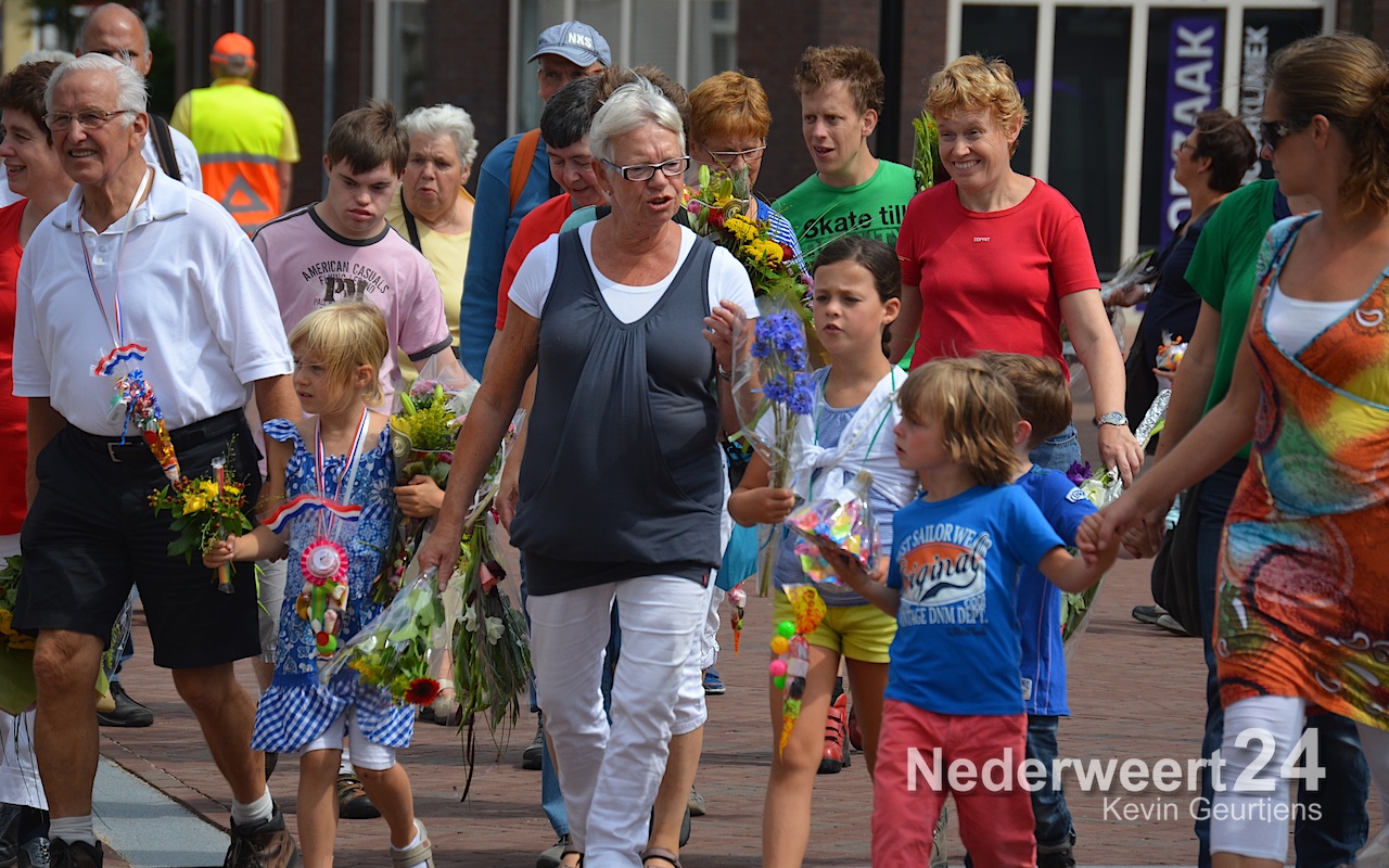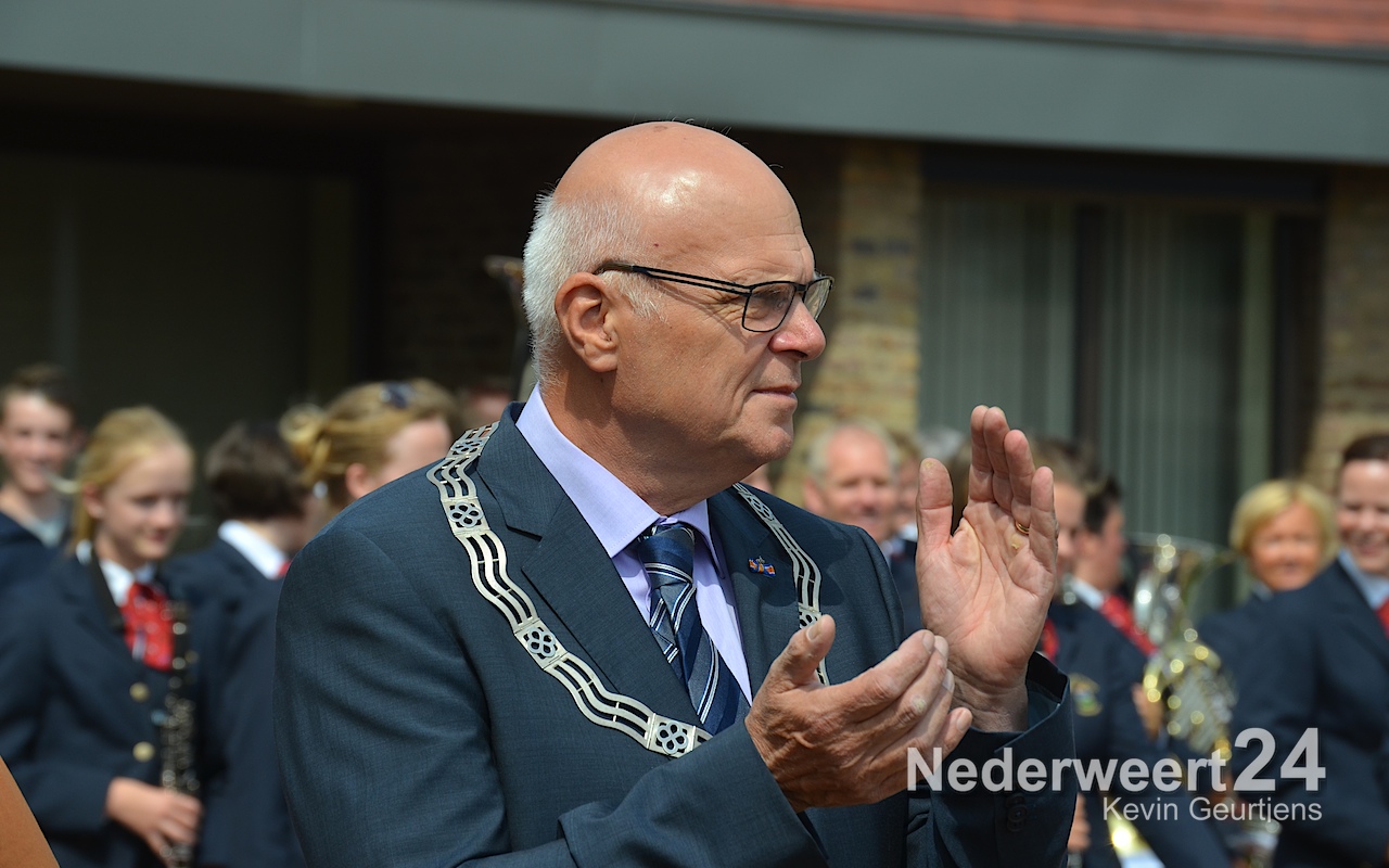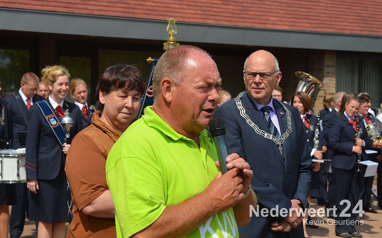 Ze werden toegesproken door Tjeu Stultiens, de voorzitter van de KVW Nederweert en natuurlijk gefeliciteerd en geënthousiasmeerd door de burgervader van Nederweert die vroeger, als klein kind en op later leeftijd, vaak meegelopen heeft aan deze prachtige tocht door Nederweert, Ni-jWieërt.