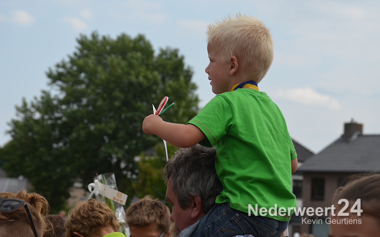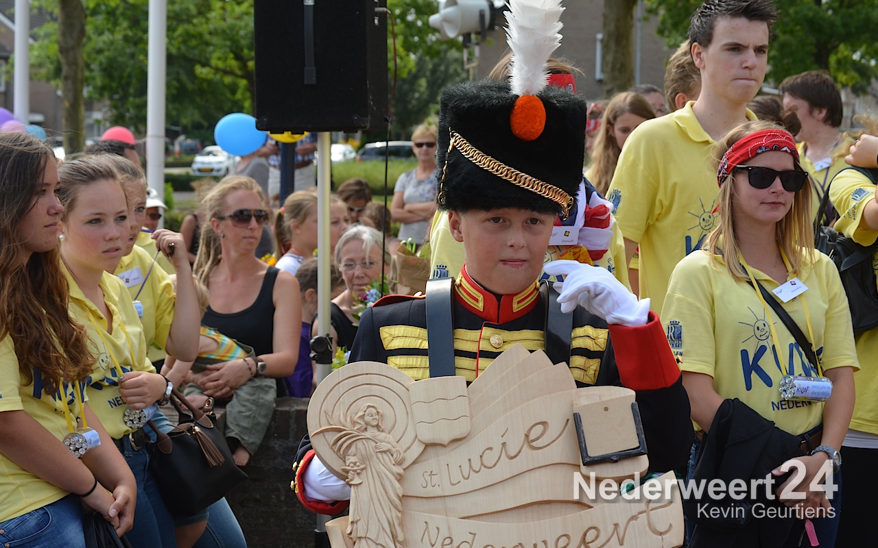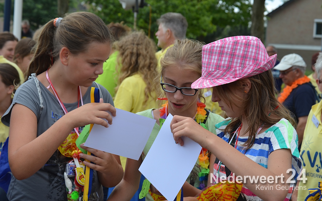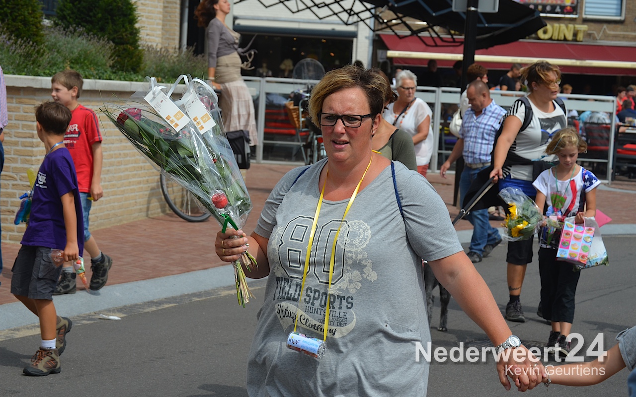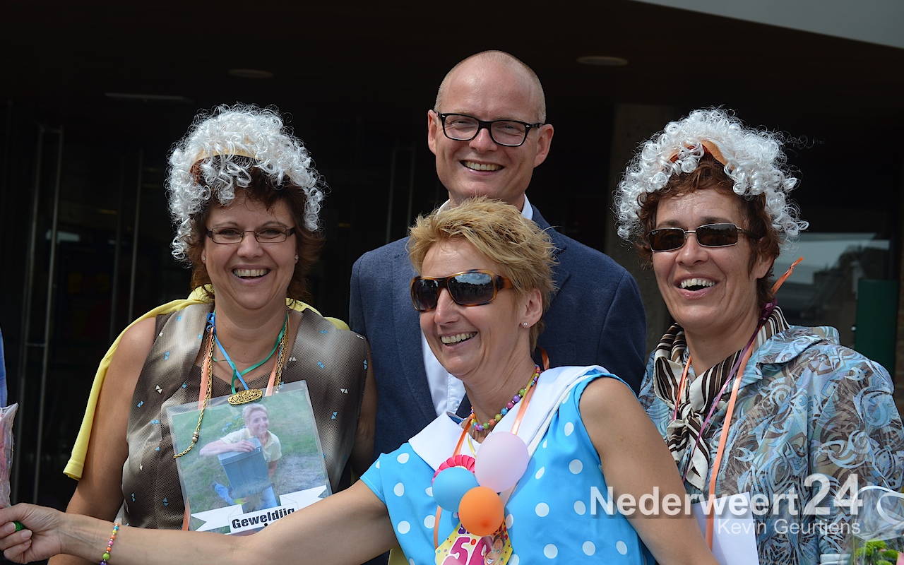 Ze werden toegesproken door Tjeu Stultiens, de voorzitter van de KVW Nederweert en natuurlijk gefeliciteerd en geënthousiasmeerd door de burgervader van Nederweert die vroeger, als klein kind en op later leeftijd, vaak meegelopen heeft aan deze prachtige tocht door Nederweert, Ni-jWieërt.