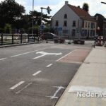 Vandaag hebben ze de strepen op het wegdek aangebracht en is er een begin gemaakt met het plaatsen van lantaarnpalen aan de kant van het loopgedeelte. Ook rondom het bouwterrein wordt flink opgeruimd zodat alles op tijd klaar is voor de grote opening op vrijdag 23 augustus.