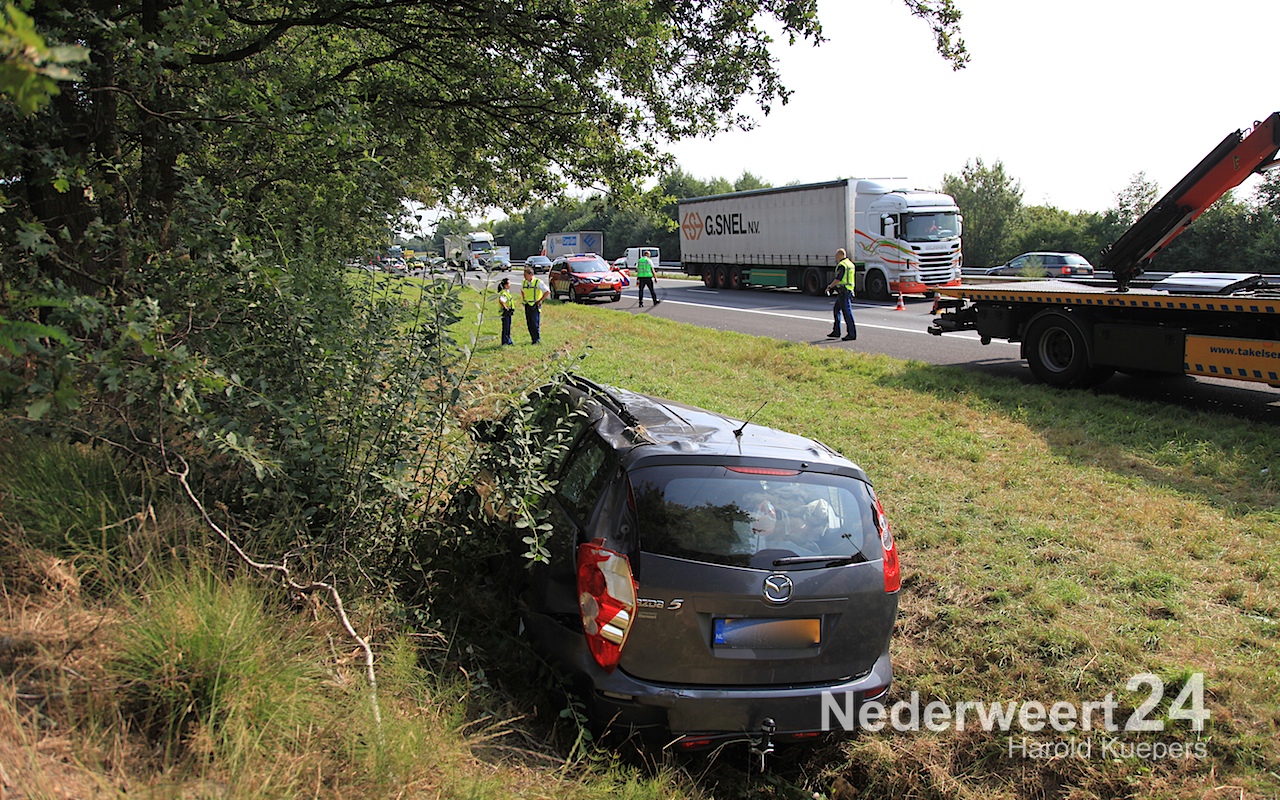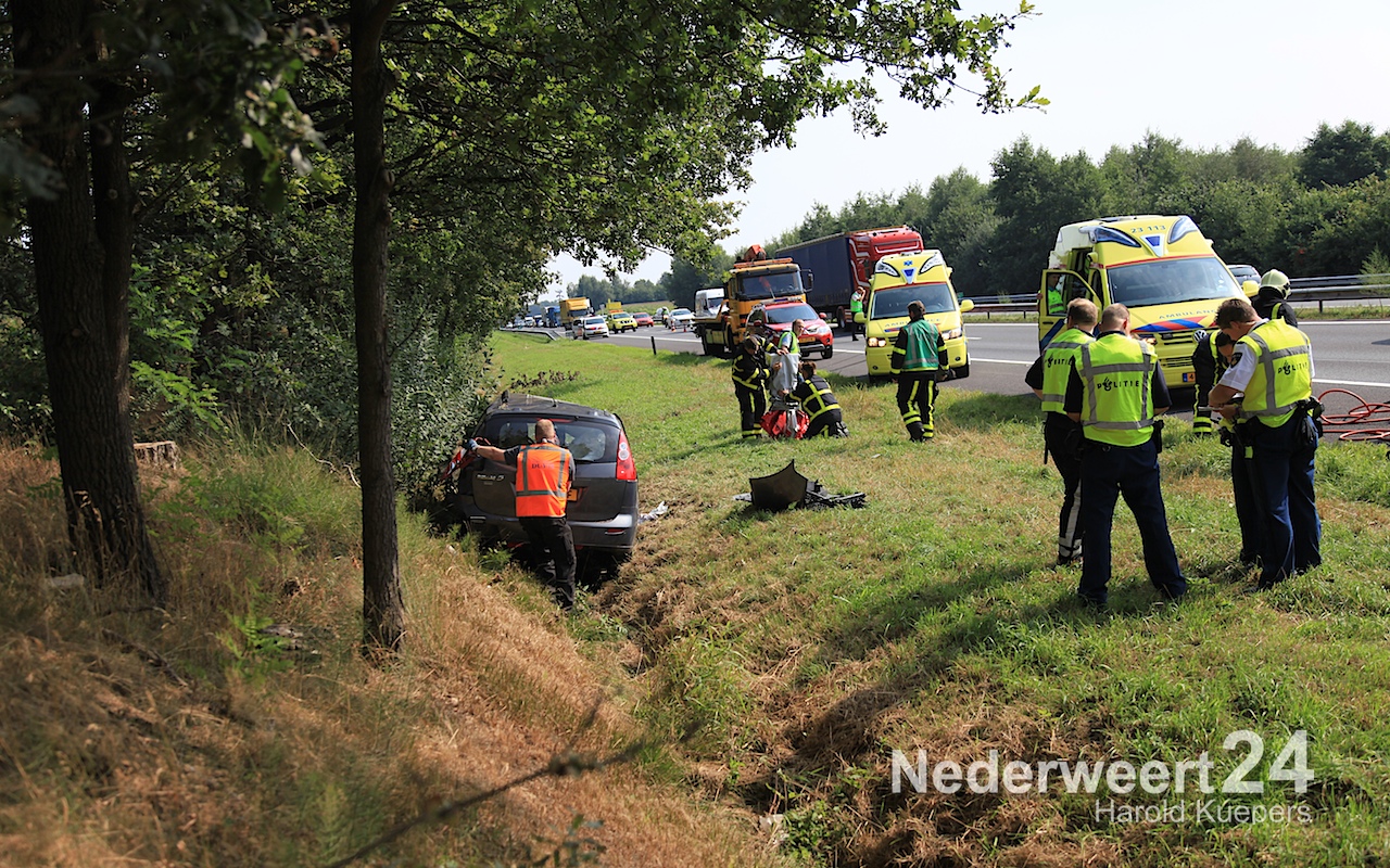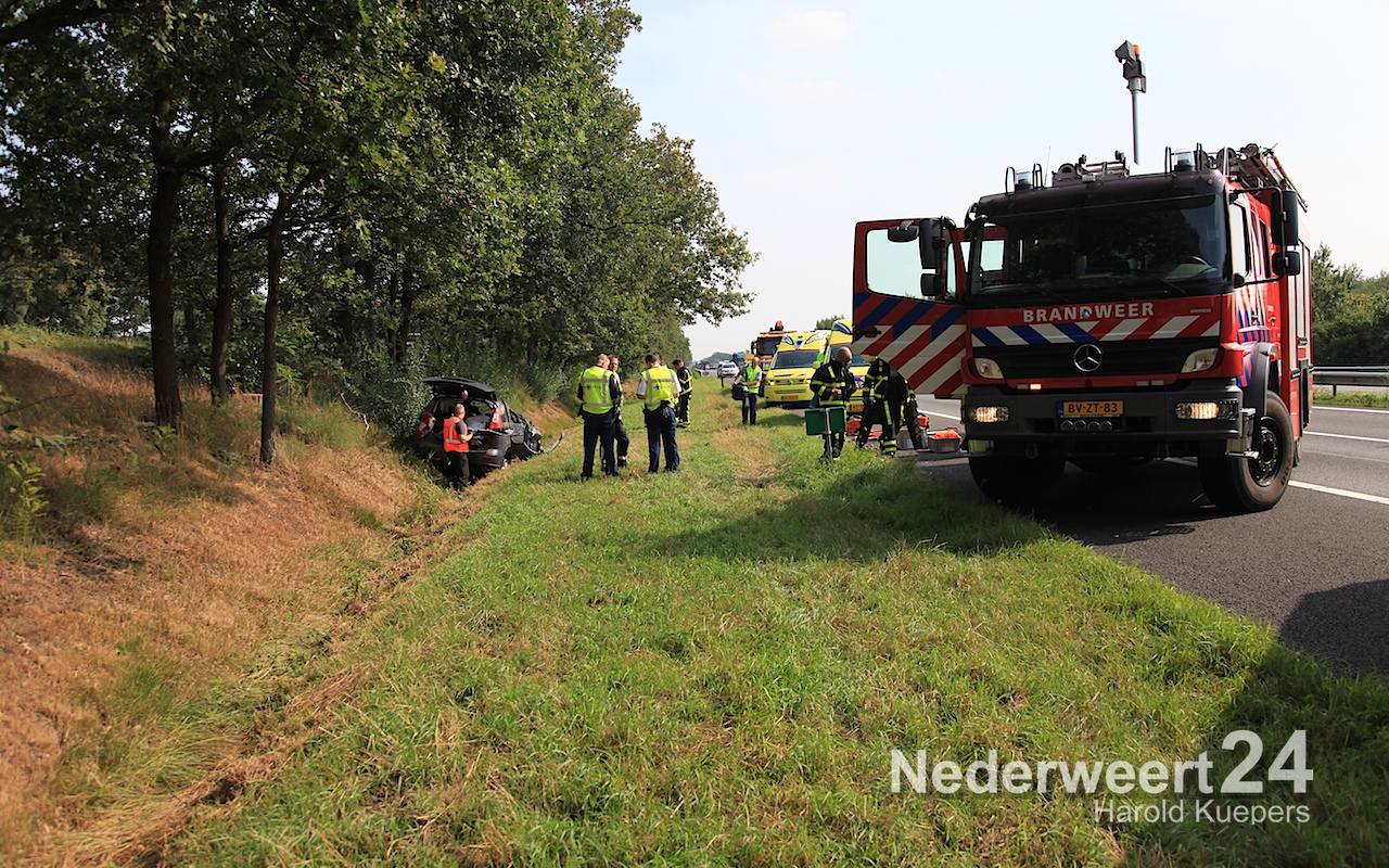 De auto reed in de richting van Eindhoven en is links in de vangrail geschoten. Daarna is hij de weg over, in de sloot naast de A2 terecht gekomen. Een persoon raakte bekneld en moest door de brandweer bevrijd worden. Een tweede inzittende kon zelf de auto verlaten. Beide inzittende zijn met de ambulance naar het ziekenhuis vervoerd.