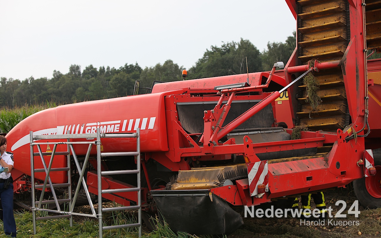bekneld in uienrooimachine