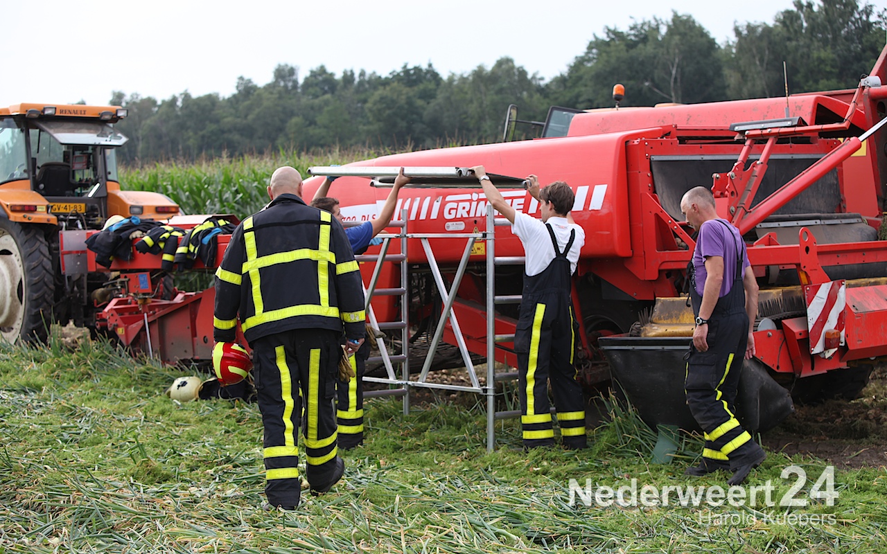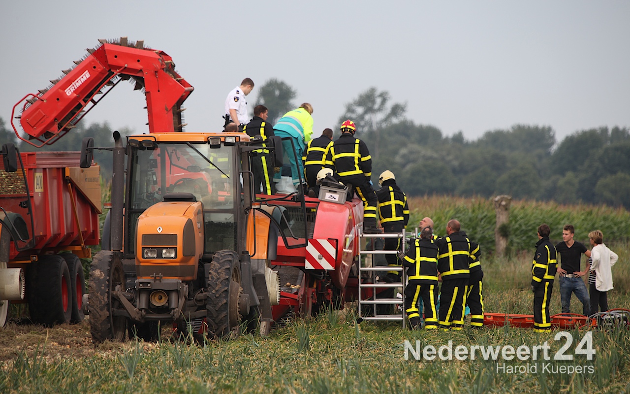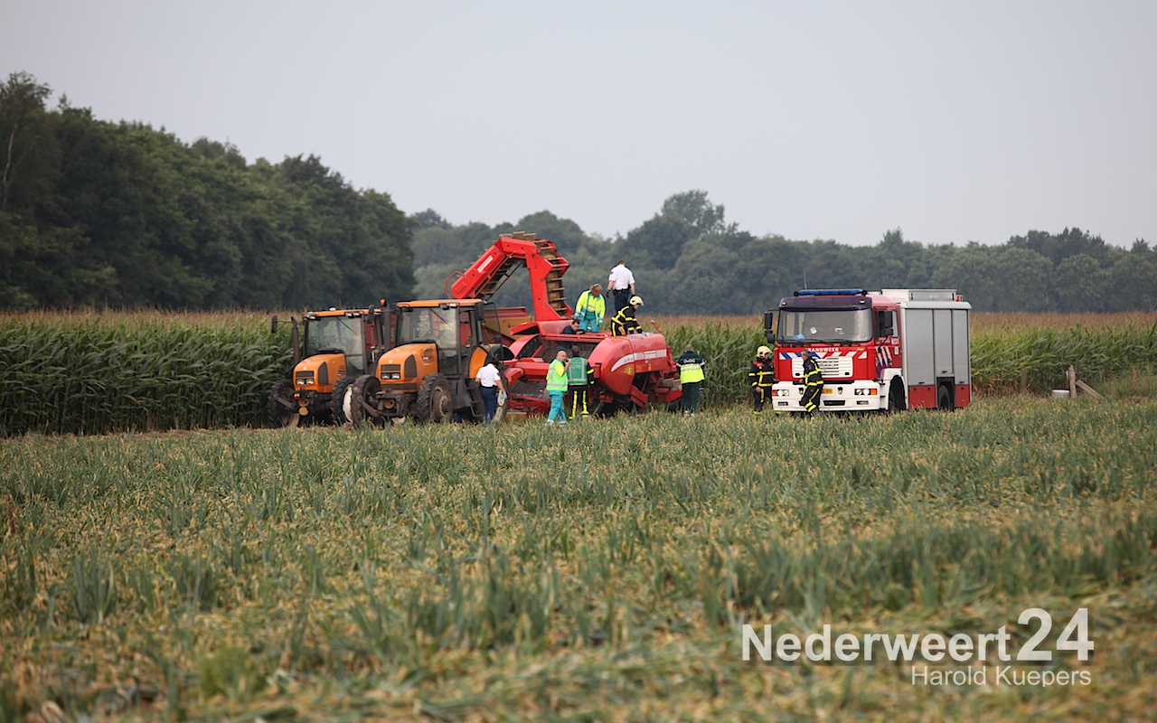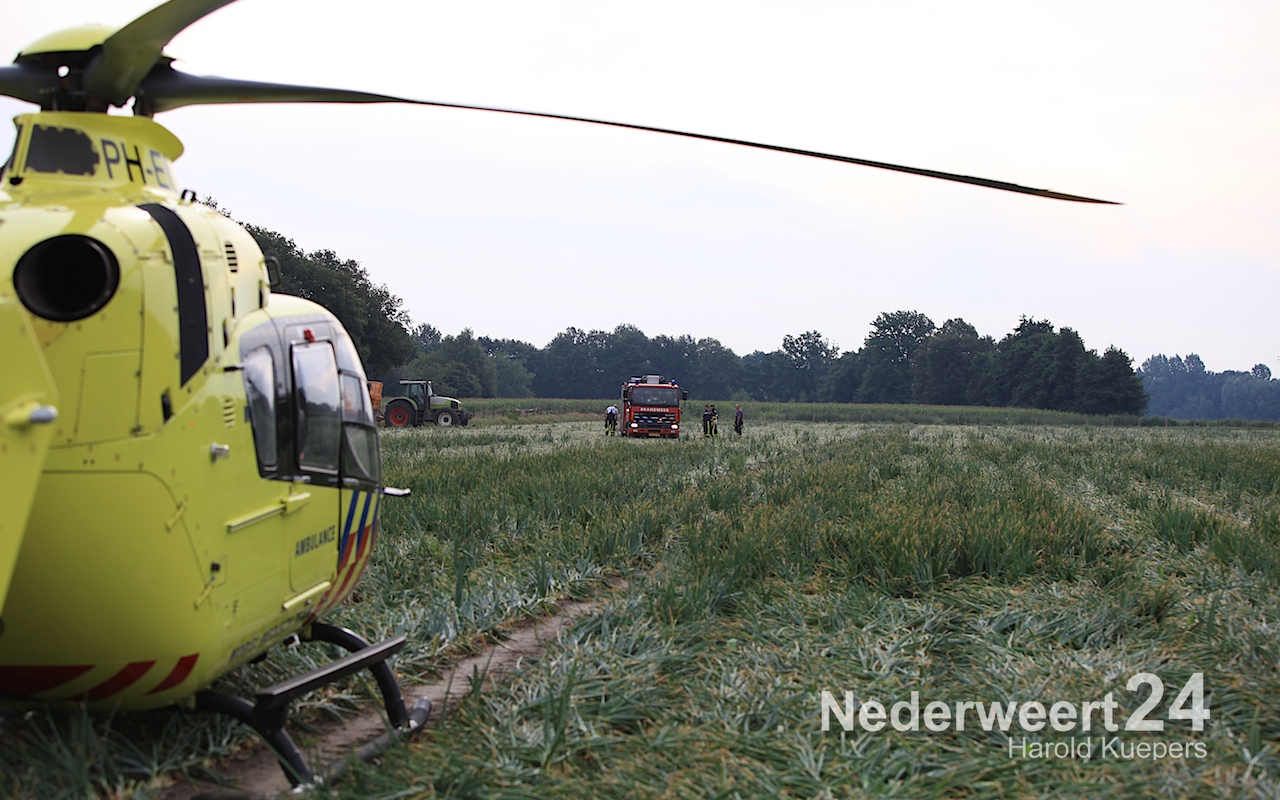 Zaterdagmorgen is een 18-jarige jongen uit Ell met zijn been bekneld geraakt in een uienrooimachine.