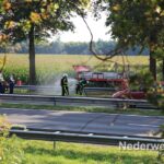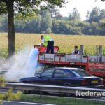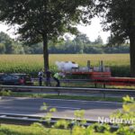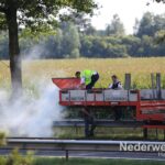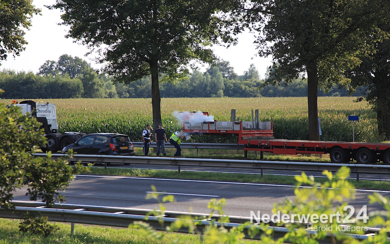De vrachtwagen had niks geladen en stond op de vluchtstrook. De chauffeur had zijn trekker inmiddels los gekoppeld van de oplegger. Aan de voorkant van de oplegger lag een rubberen mat waar rook vanaf kwam.