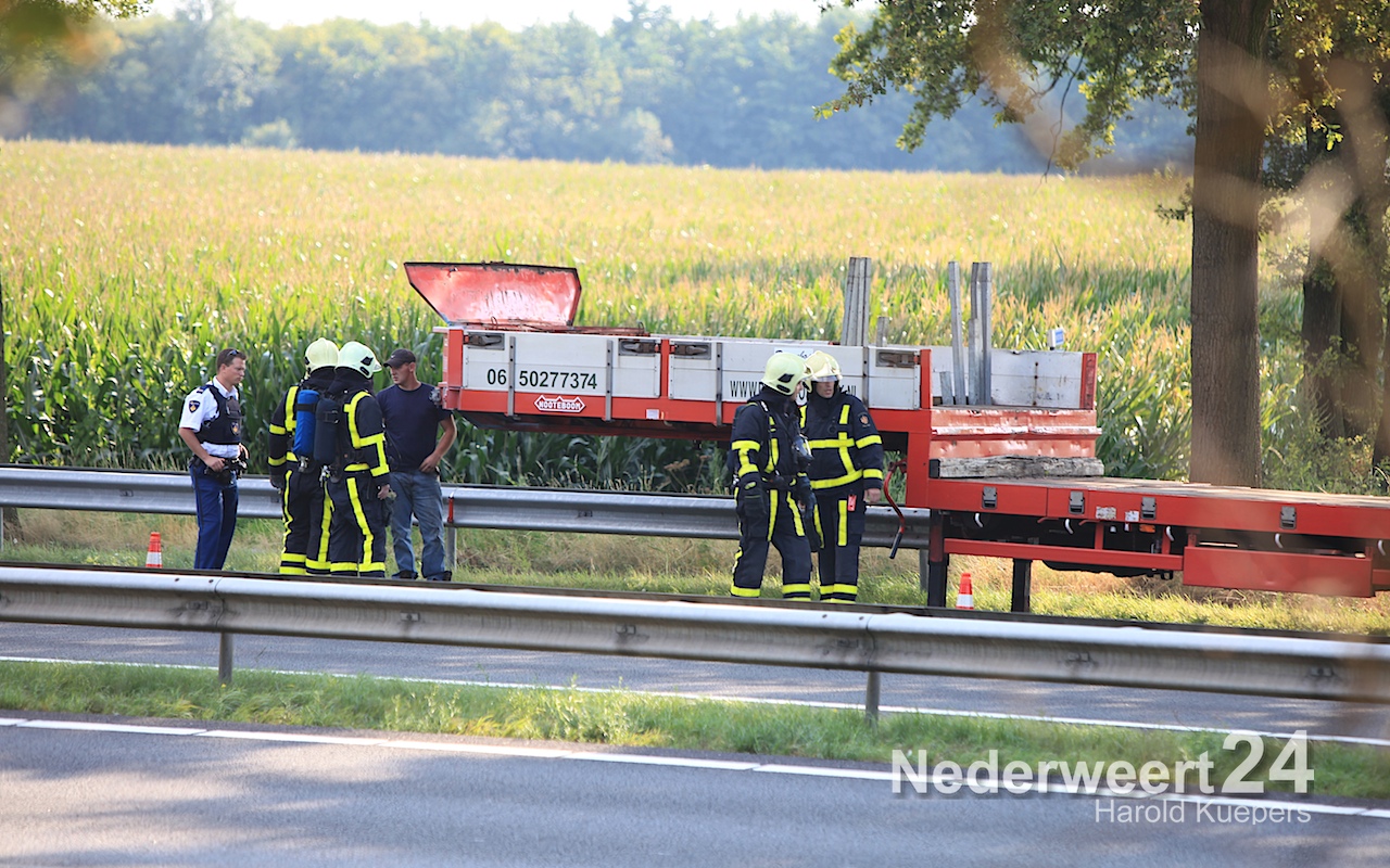Dinsdagmiddag is de brandweer uitgerukt voor een vrachtwagenbrand op de A2 ter hoogte van Grathem.