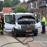 Woensdagmorgen heeft een vrachtwagentje vlam gevat onder het dashboard op de Stationsstraat in Baexem.