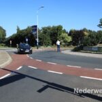 Het verkeer ondervindt flinke hinder omdat de rotonde gedeeltelijk is afgesloten. De politie is bezig met het sporen onderzoek.
