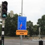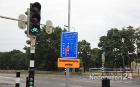 Sinds vrijdagmiddag is de verkeerssituatie bij de stoplichten voor fietsers bij Brug 15 gewijzigd.