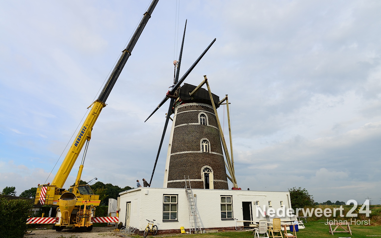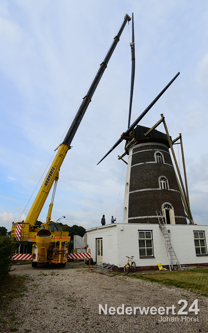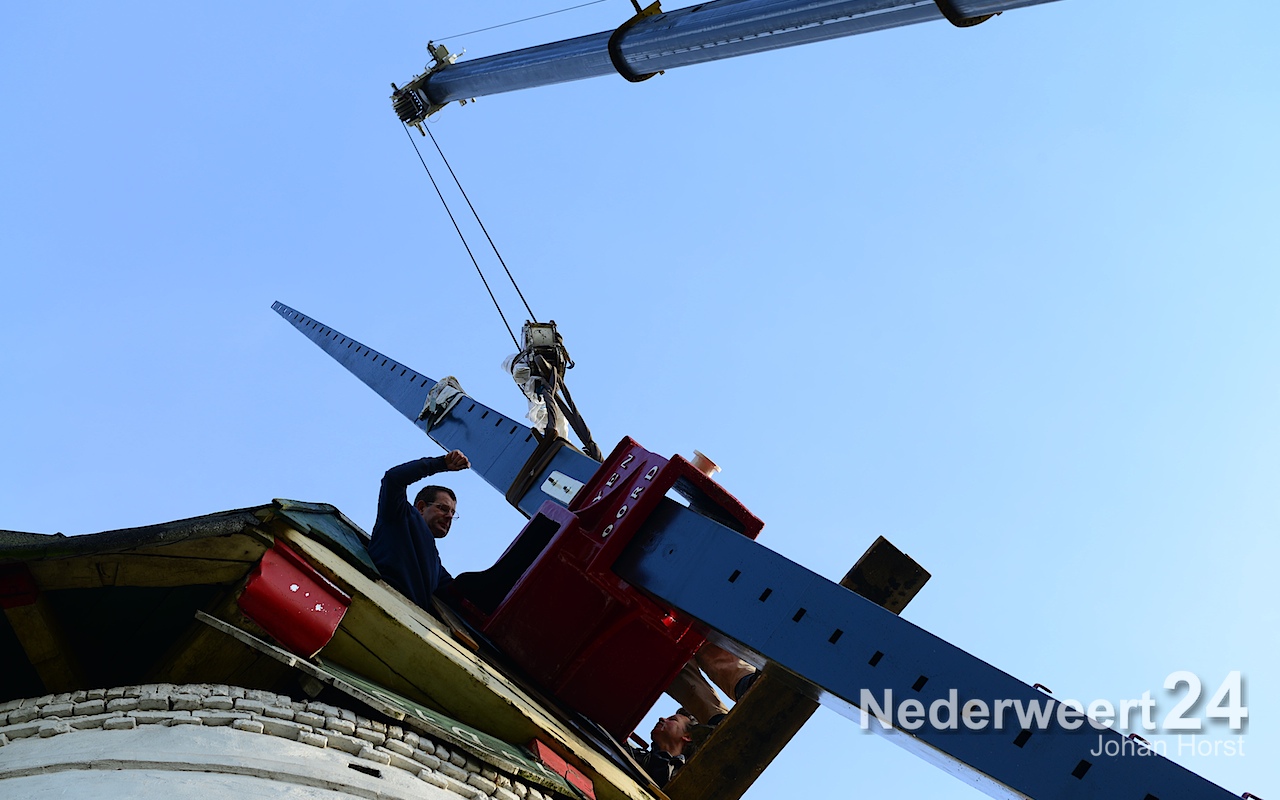 2013-09-10 Antoniusmolen in Laar heeft haar wiekenkruis 868De Antoniusmolen in Laar heeft dinsdagmorgen haar wieken weer terug gekregen nadat deze afgelopen maand grondig zijn gerestaureerd.