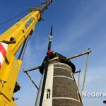 De Antoniusmolen in Laar heeft dinsdagmorgen haar wieken weer terug gekregen nadat deze afgelopen maand grondig zijn gerestaureerd.