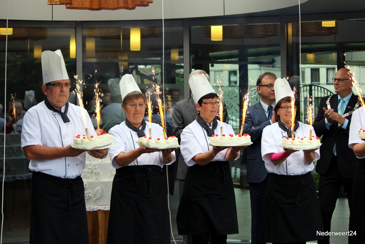 Een afvaardiging van betrokken partijen waaronder ook een bewoner verrichtte de openingshandeling. Er kwam een grote taart met een rode kers tevoorschijn. Dit verwees symbolisch naar de kers die bij de start van de nieuwbouw op de taart is gezet. Daarna was er tijd voor een drankje en kon er nog nagepraat worden over dit mooie zorgcentrum van Nederweert.