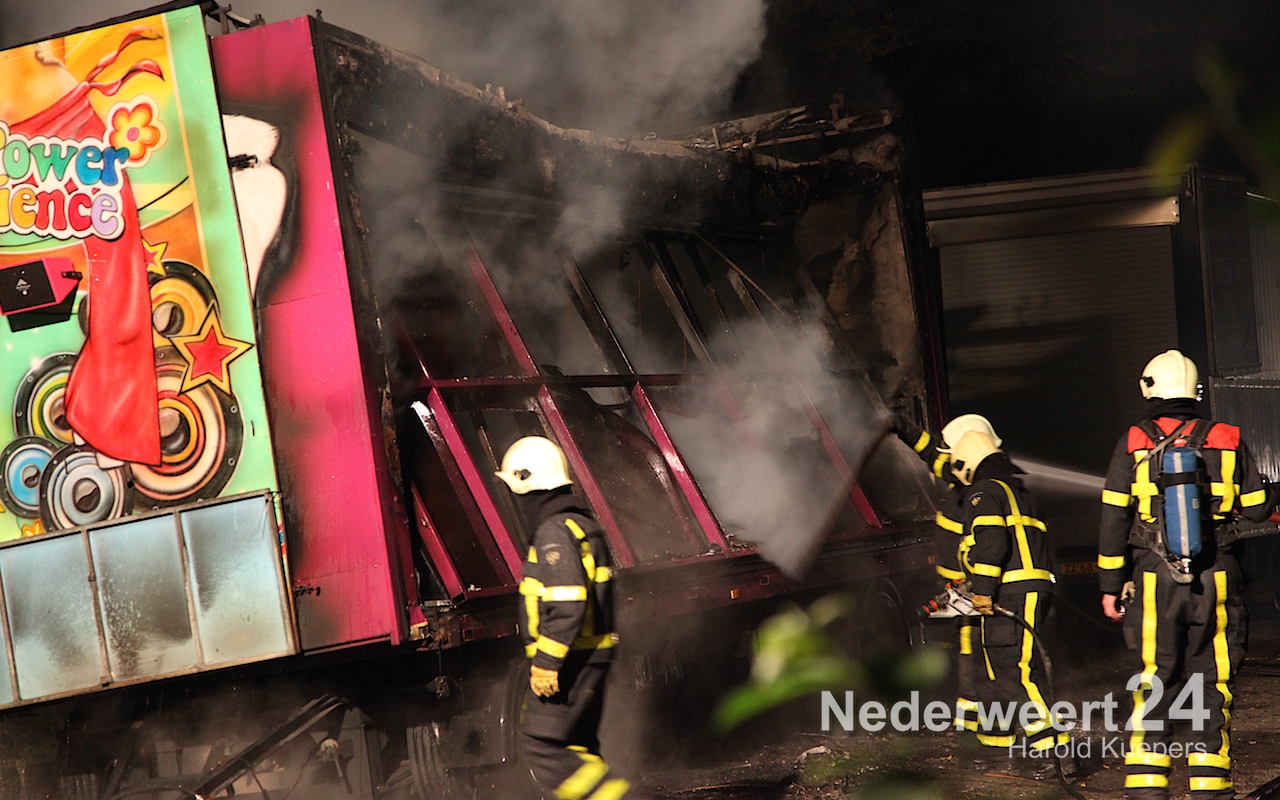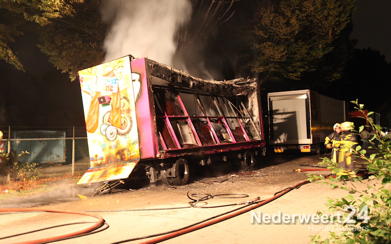 Maandagavond is in Weert een aanhanger van een kermiswagen volledig uitgebrand. De wagen stond geparkeerd op de Hoolstraat, klaar voor om opgebouwd te worden voor de Weerterkermis van komend weekend.