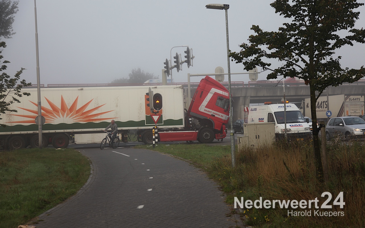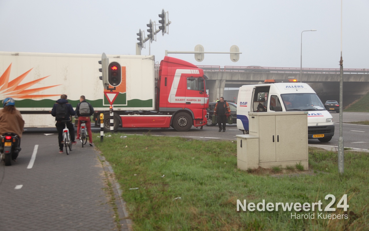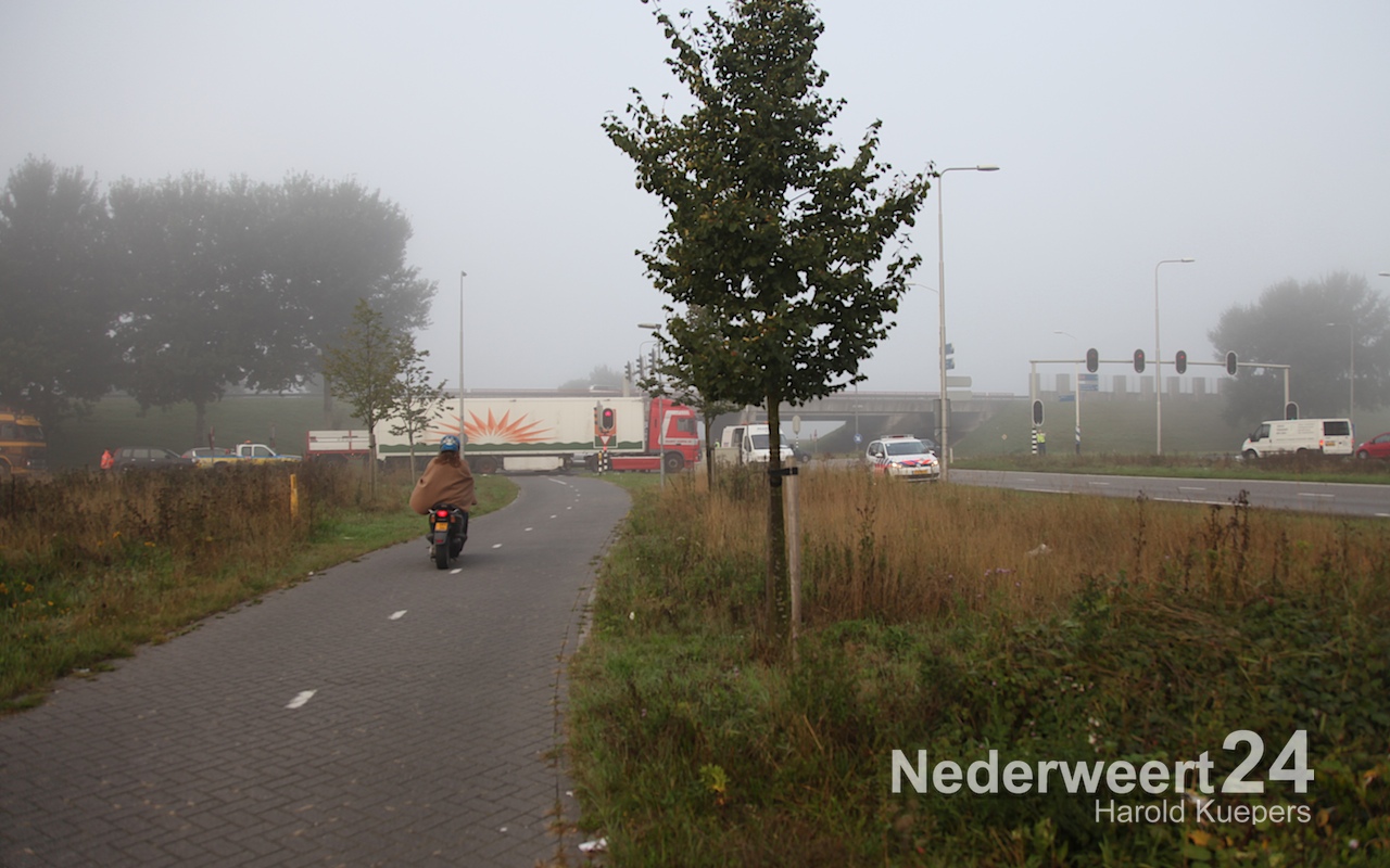 Vrijdagmorgen is een vrachtwagen met pech gestrand op de afrit A2 bij Nederweert. De vrachtwagen kwam vanuit Maastricht en is onder aan de afrit, precies ter hoogte van het fietspad, stil komen staan. De fietsers worden onder begeleiding langs de vrachtwagen geleidt.
