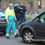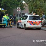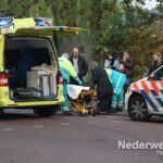 De vrouw kwam ten val en raakte licht gewond. Ze is meegenomen naar het ziekenhuis. De auto en de fiets liepen licht schade op. De politie onderzoekt de oorzaak van het ongeval.