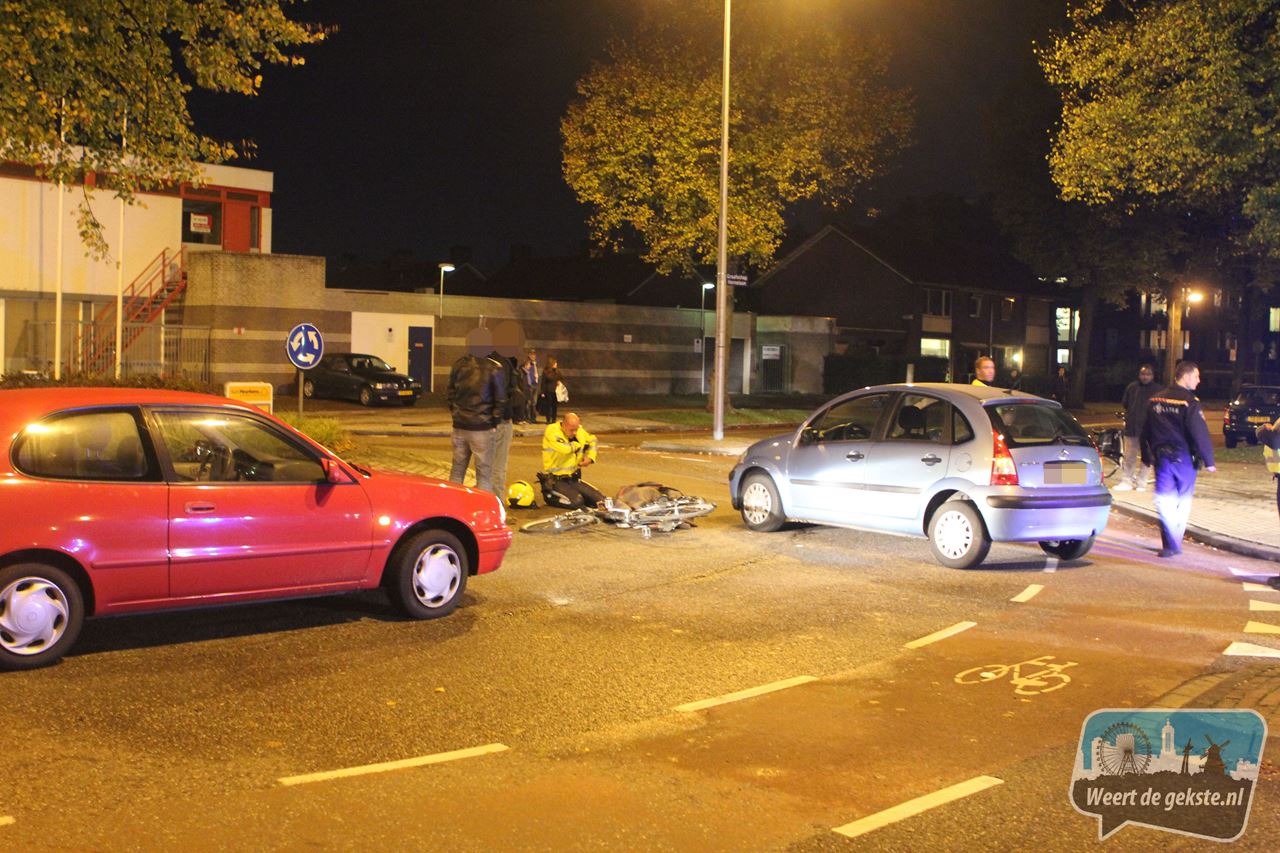 Donderdagavond is rond negen uur een fietser aangereden door een personenauto op de rotonde op de Roermondseweg ter hoogte van de Maaspoort en Graafschap Hornelaan.