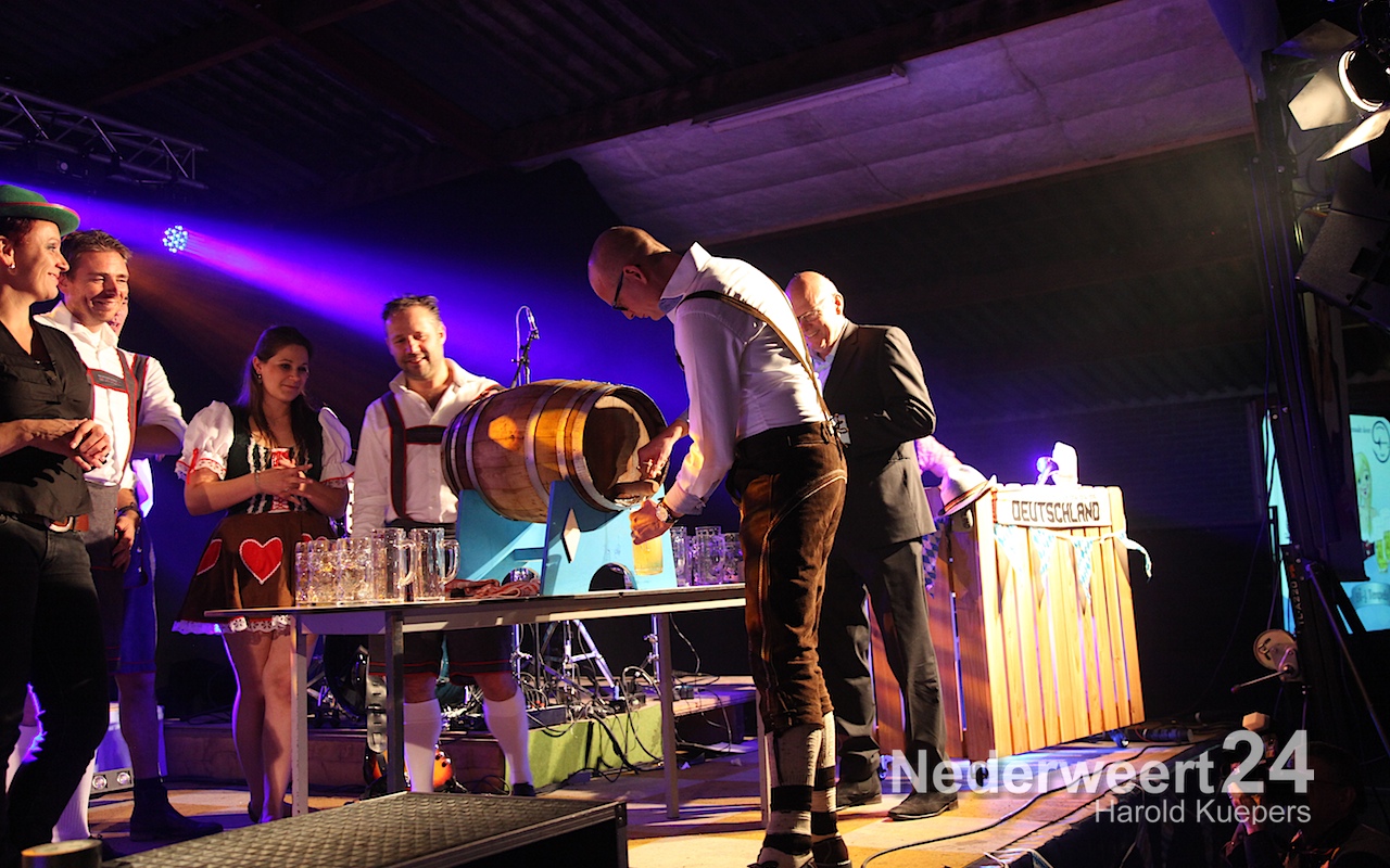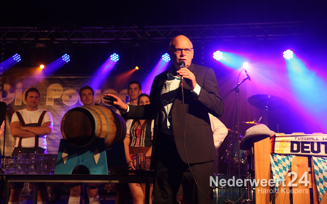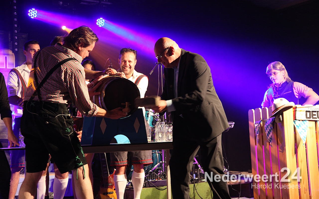 Zaterdagavond heeft burgemeester Evers officieel de derde editie van de Oktoberfeest Ospel geopend. Gisteren was het met 750 bezoekers volle bak en stroomde het bier al rijkelijk maar zaterdagavond heeft onze burgervader pas het eerste vat bier officieel aangeslagen.