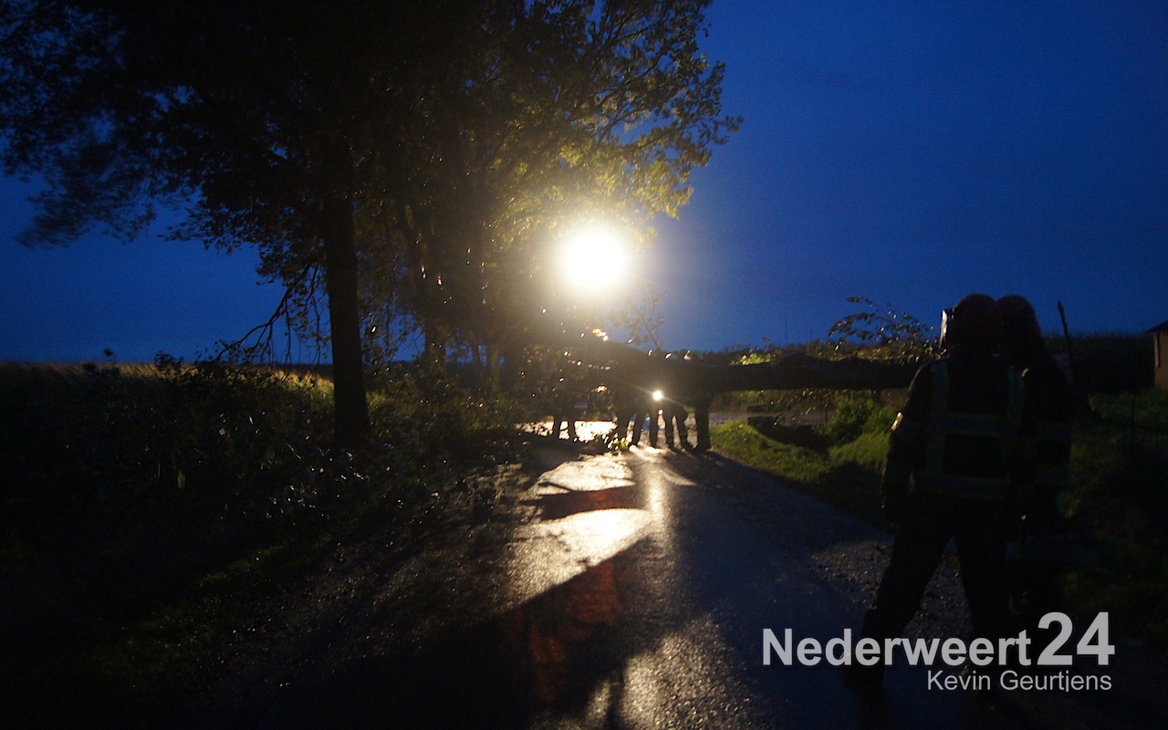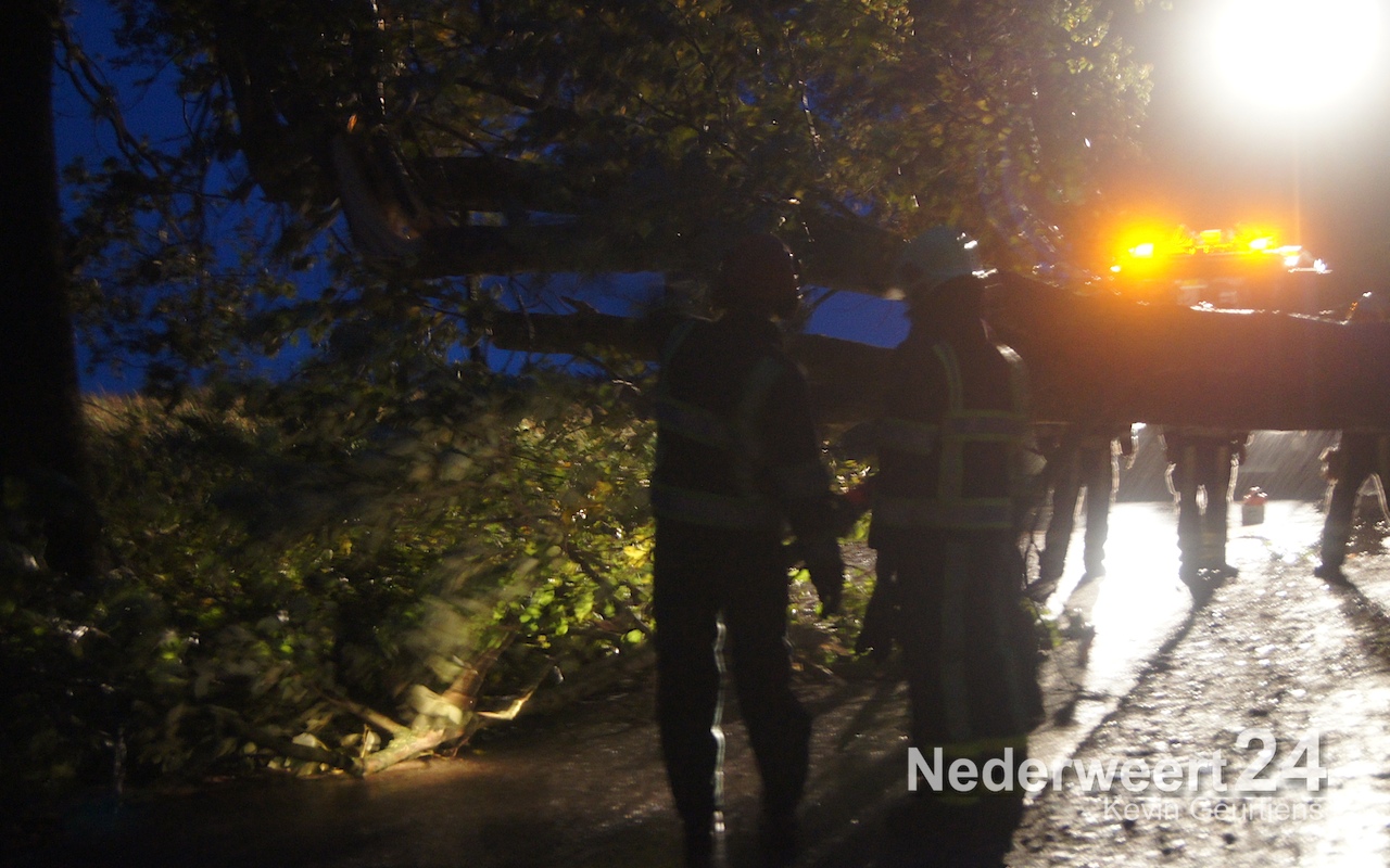 De boom was over de weg en tegen een ander boom aan gevallen. De brandweer heeft de boom eerst met behulp van een kabel uit de andere boom getrokken. Daarna hebben ze de boom klein gezaagd zodat het verkeer weer door kon.