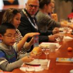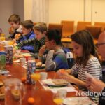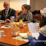De kinderen kwamen sportief en gezond te voet naar het gemeentehuis waar ze werden ontvangen door burgemeester Evers. De tafel stond mooi gedekt met broodjes van bakkerij Tommy. Deze keer niet alleen bruine boterhamen. Omdat het een feestelijk ontbijt is deze keer ook lekker croissantjes en harde broodjes. De kinderen ook vragen stellen aan de burgemeester: Wat eet u het liefst ’s morgens? Wat eet u op vakantie? De burgemeester vertelde de kinderen dat hij elke morgen een goed en gezond ontbijt eet voordat hij naar het gemeentehuis komt. Als hij op vakantie is dan wil hij ook wel eens een beetje een lekker ontbijt nuttigen.