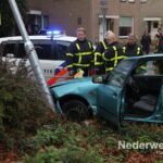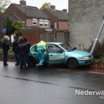 Woensdagmiddag is rond twee uur een auto door nog onbekende reden tegen een lantaarnpaal aan gereden op de Burcht in Boshoven.