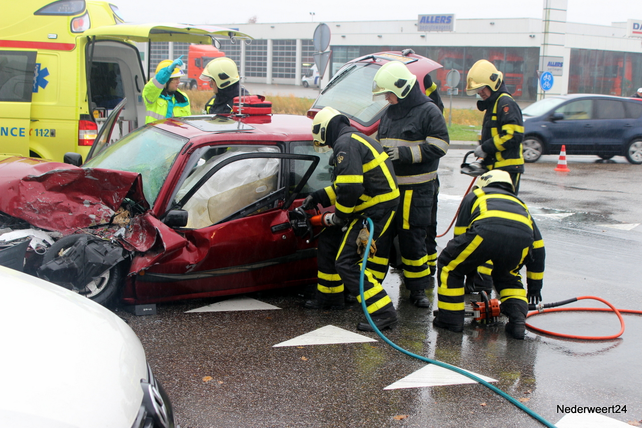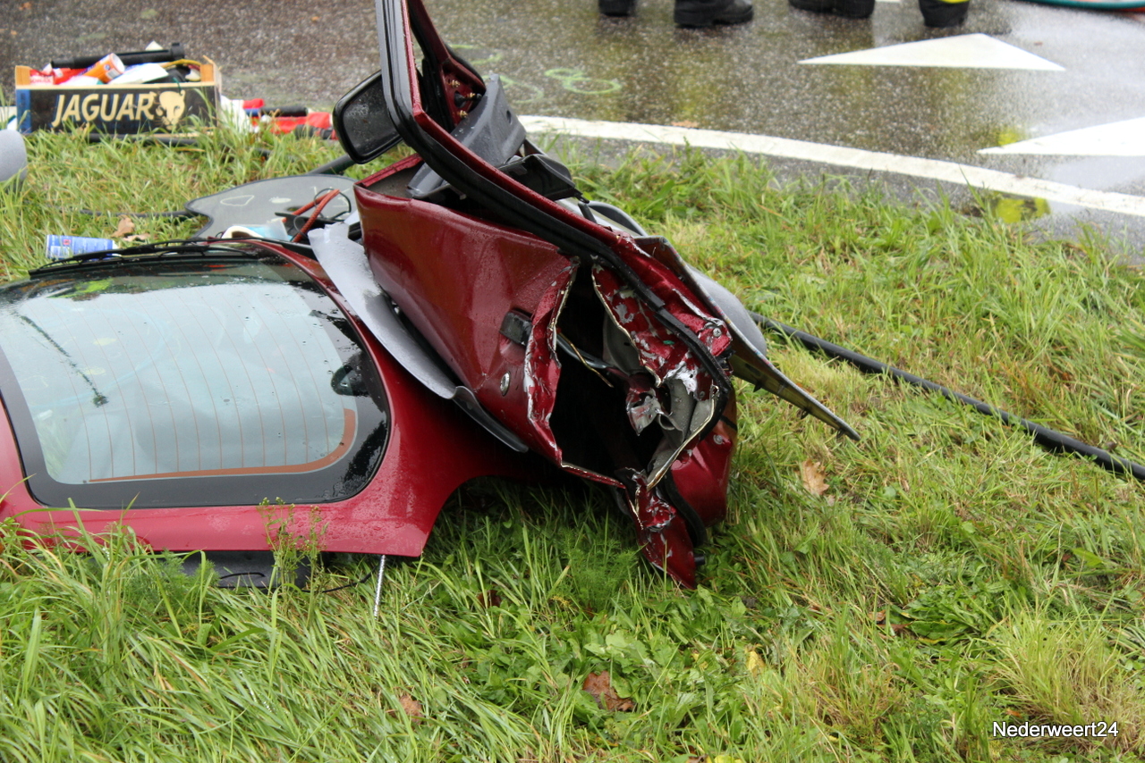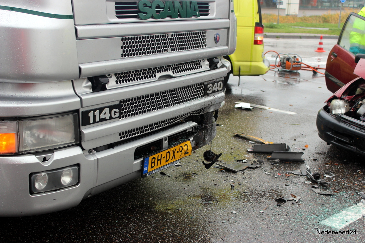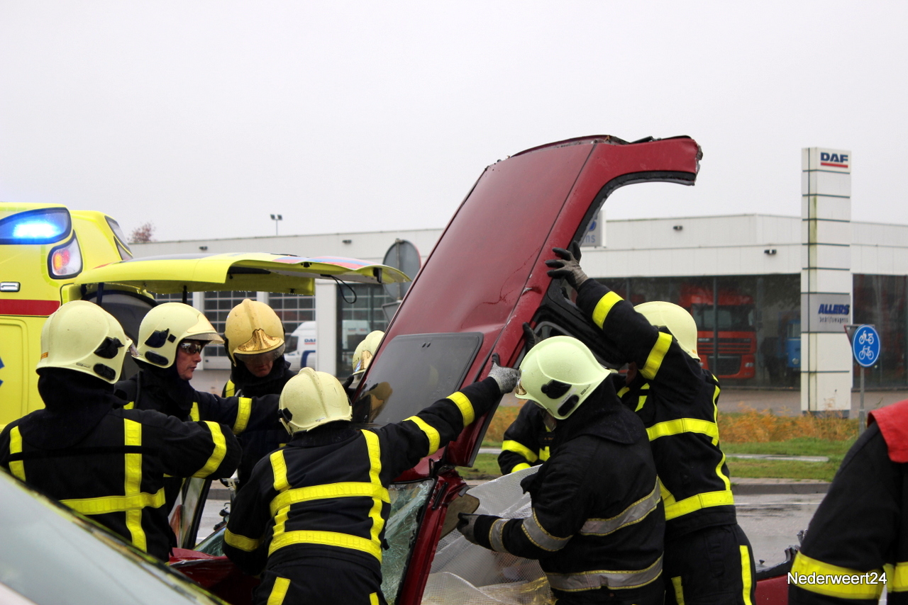De personenauto zat dermate in elkaar dat de bestuurder met zijn benen klem in de auto zat. Rond 10.00 uur kon de bestuurder uit het voertuig worden gehaald en is toen per ambulance afgevoerd naar het ziekenhuis in Weert. De ringbaan richting Nederweert werd tijdelijk afgesloten en het verkeer moest over het industrieterrein. De juiste toedracht wordt nog onderzocht.