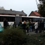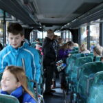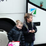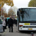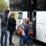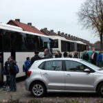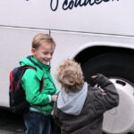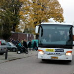 Ruim voor 8.00 uur dinsdagmorgen stonden er 2 grote bussen te wachten in de Pastoor Brandstraat in Nederweert-Eind. De kern van Eind zag er nog verlaten uit. Vanaf 8.00 uur kwamen de eerste leerlingen met hun ouders nog onwennig naar de bussen. Al gauw werd het drukker en drukker. Elke leerling kreeg zijn of haar vaste plek in de bus toegewezen en er was nog even de gelegenheid voor een kus of een knuffel. Precies volgens schema had iedereen om 8.15 uur een plek in een van de bussen ingenomen en konden de bussen luid toeterend Nederweert-Eind verlaten.