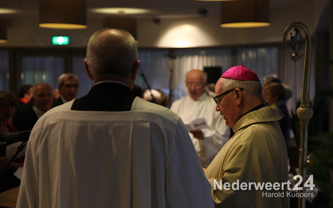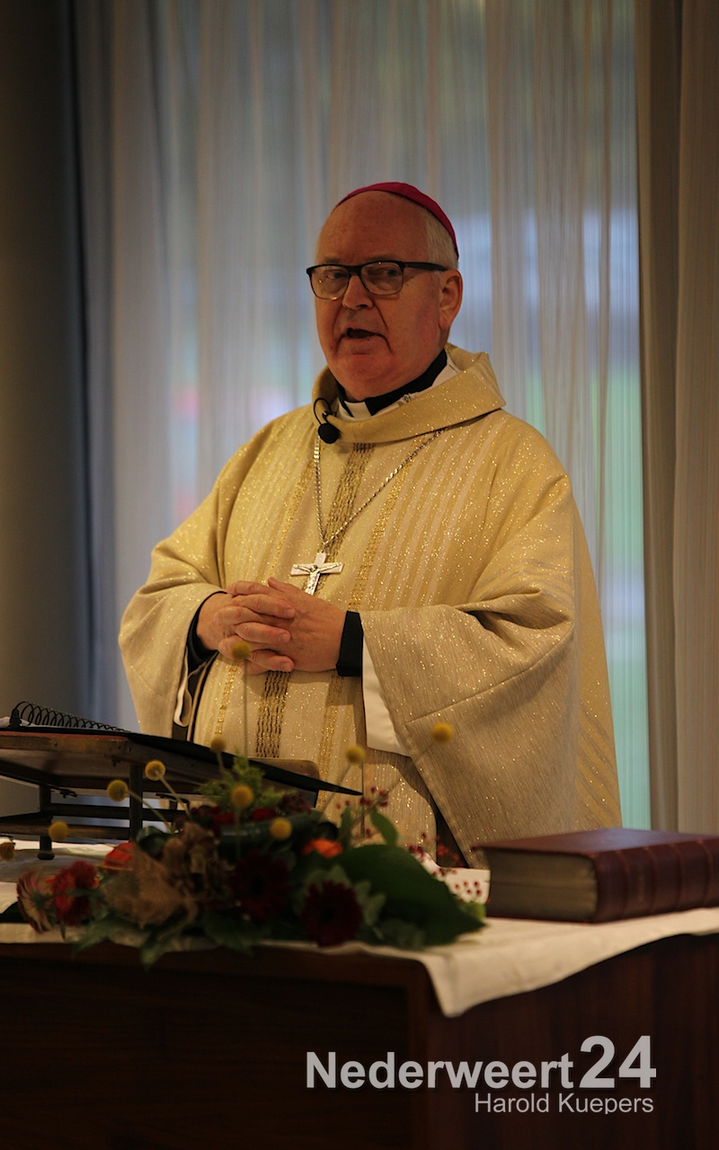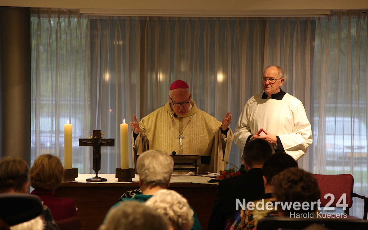 De Bisschop leidde de Eucharistieviering in Gasterij De Ontmoeting, de gemeenschappelijk ruimte van het nieuwe zorgcentrum, welke op 21 september officieel is geopend. Er was gekozen voor een kleinschalige opzet. De bewoners van het zorgcentrum mochten elk een familielid meenemen om de bijeenkomst klein en huiselijk te houden. Oud directeur Léon Wijers hield een korte opening waarna de Eucharistie, onder begeleiding van het koor, gevierd werd.