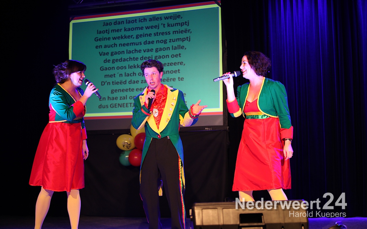 Het begon natuurlijk met een optreden van de winnaar van vorig jaar: De joeksige vrölliej. Ze moesten de wisseltrofee in weer afgeven. Echter niet voordat presentator van de avond, Jos Willekens, gecontroleerd had of hun naam er ook zeker op stond. Hierna was het tijd voor optredens van De Brelsterte, Niels, Rudi en Maarten, Tommè-dèh, Duo 2 maol 11, Duo Dik Vör Mekaar en de Zugabe.