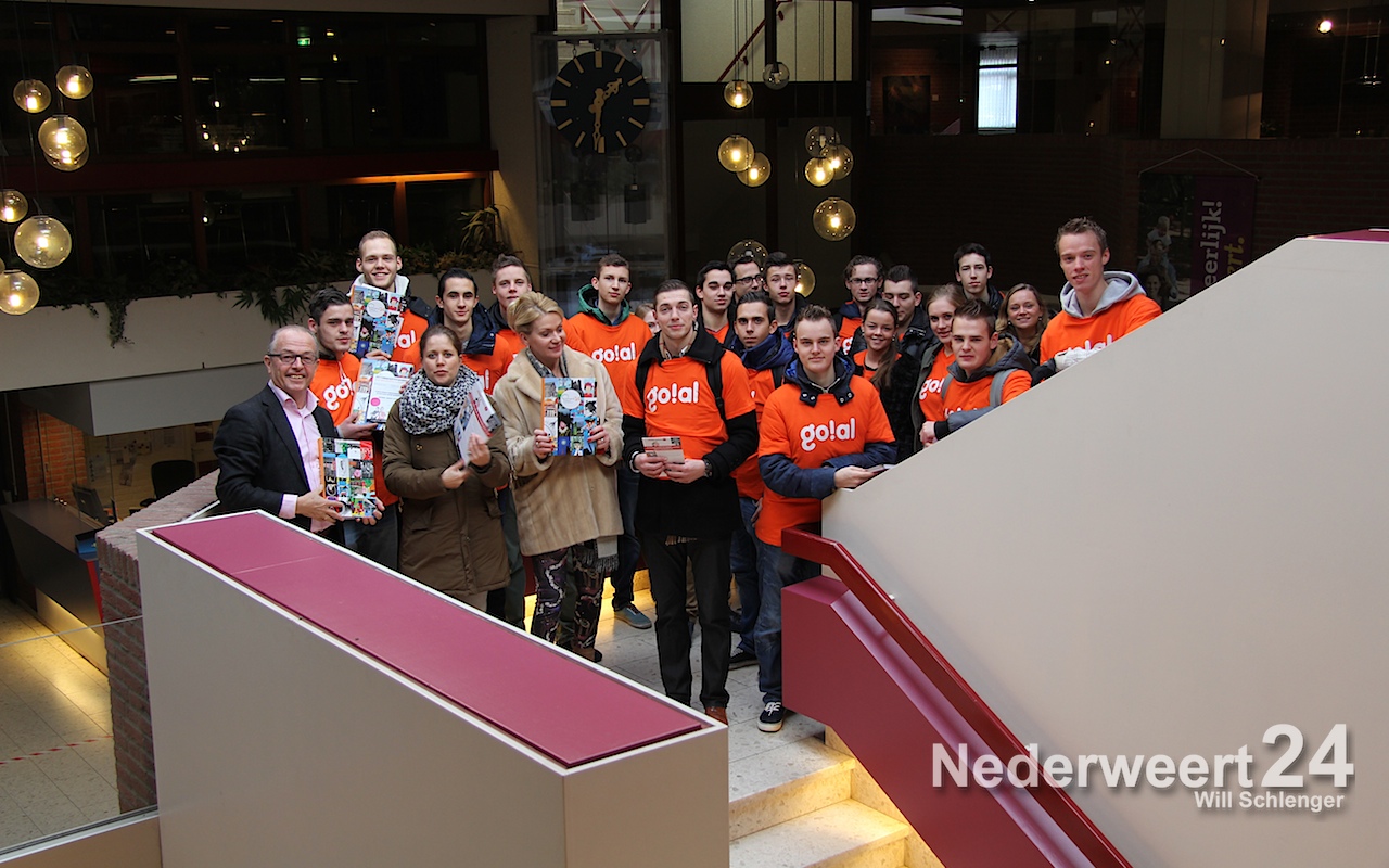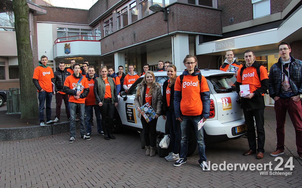 Promotie stadsagenda WeertVanmorgen bestormde een grote groep leerlingen van de Gilde Opleidingen uit Weert de binnenstad om de nieuwe stadsagenda van Weert 600 jaar stad uit te delen en te promoten. In in de Poort van Limburg werd deze gisteravond als eerste uitgereikt aan Burgemeester Heijmans door Floor Schoenmakers en Cindy Denessen-Bastiaans.