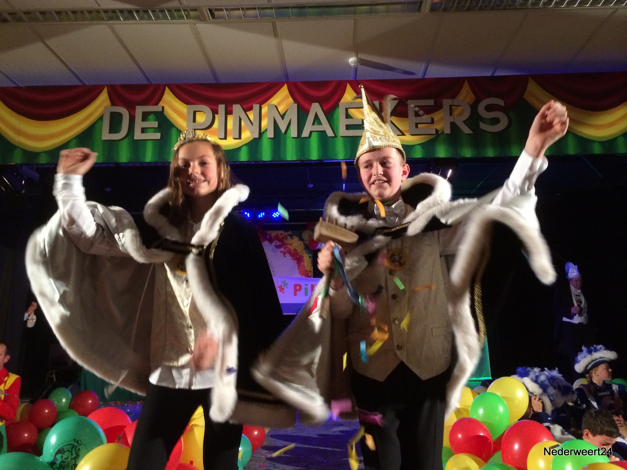 Jeugdprins Tim 1 en prinses Charlotte van de PinmaekersIn een bomvolle Pinnenhof in Nederweert hebben de Pinmaekers zondagmiddag 24 november 2013 het nieuwe Jeugdprinsenpaar 2014 gepresenteerd. Het jeugdprinsepaar zal dit jaar worden gevormd door prins Tim I (Maas) en Prinses Charlotte (Schroën).