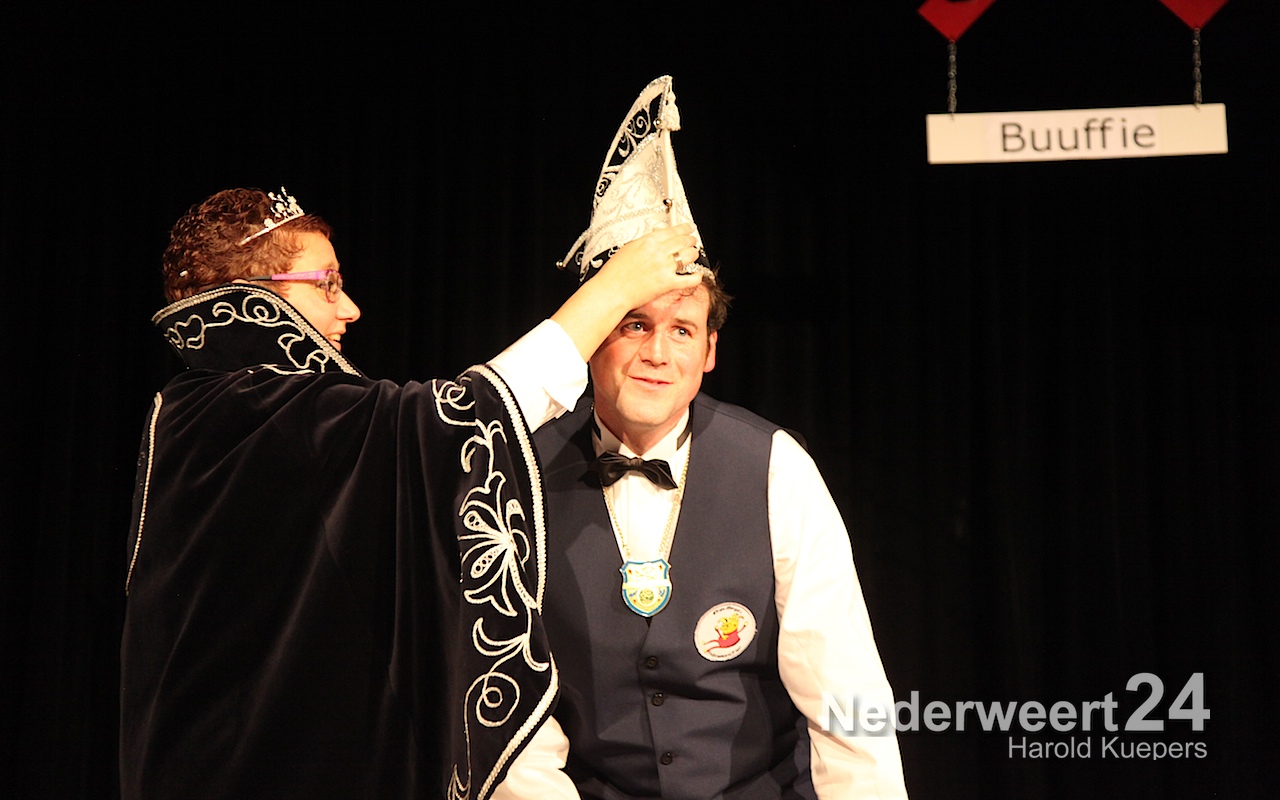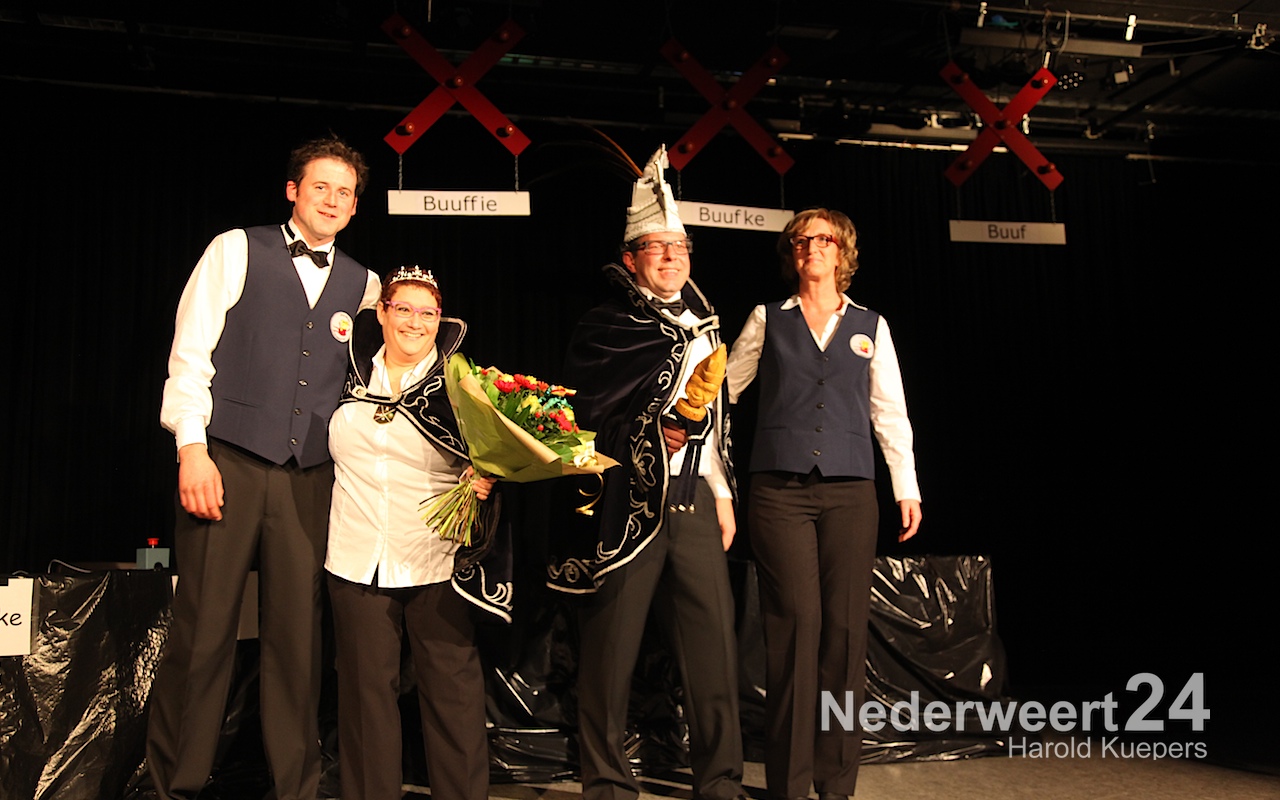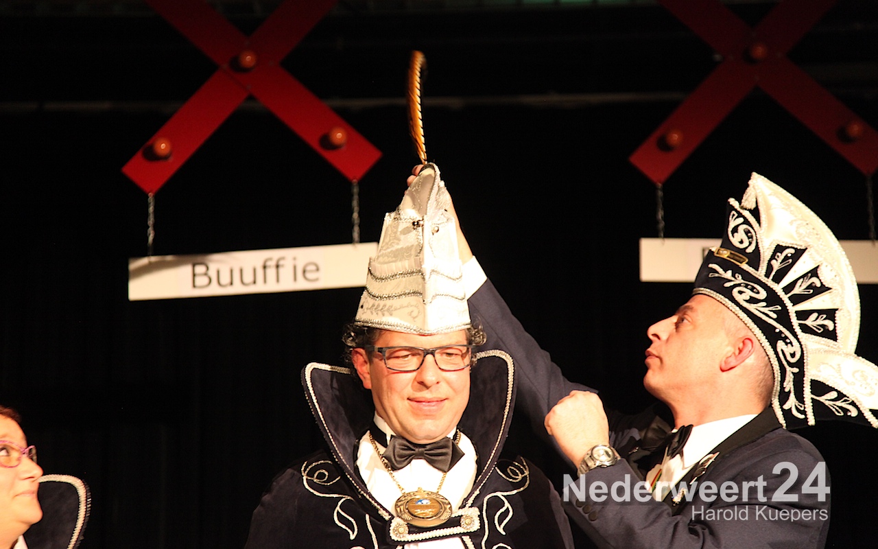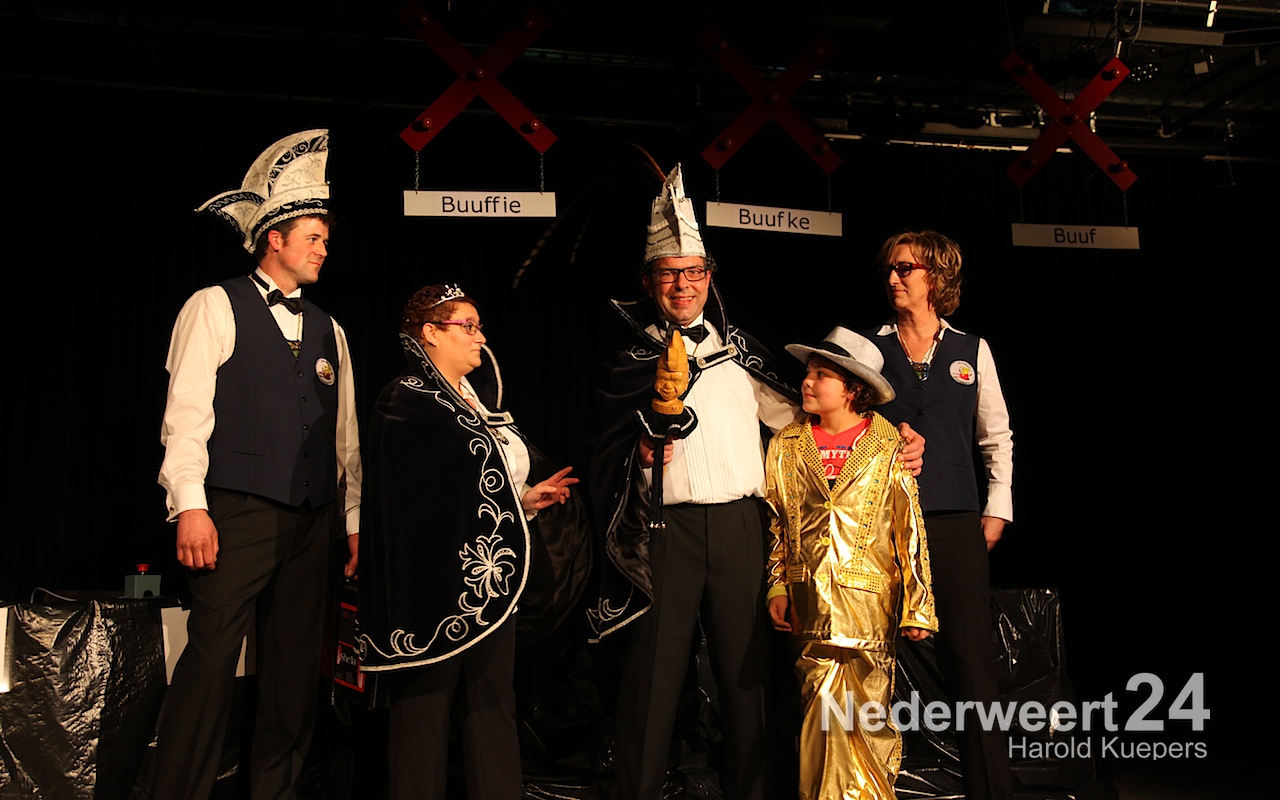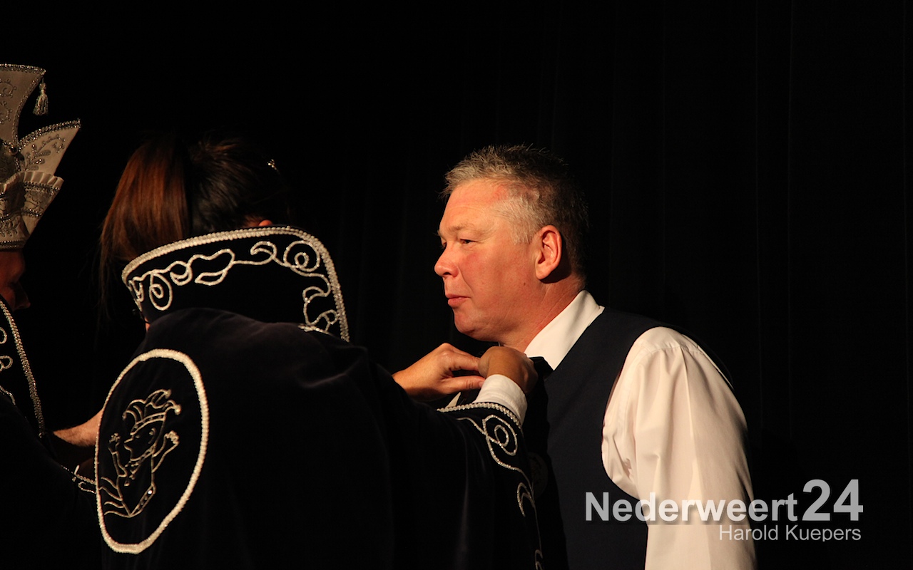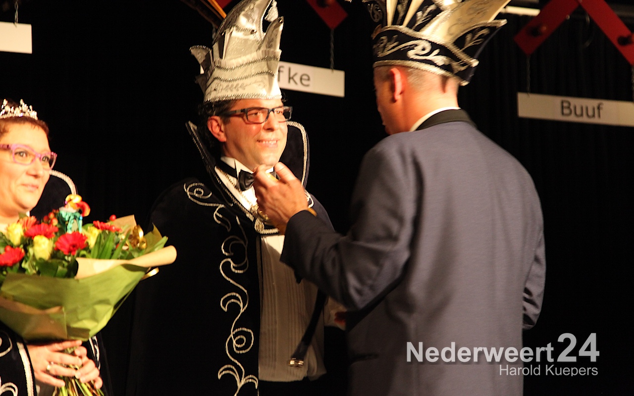 Natuurlijk werd eerst Prins Jan III (Jan Teeven) afgetakeld en bedankt voor al het moois van afgelopen jaar. Onder luid applaus en muzikale begeleiding van de de band werden eerst de versierselen afgedaan van de adjudanten Paul Douven en Jos Dehing. Daarna was het de beurt aan het prinsenpaar zelf.