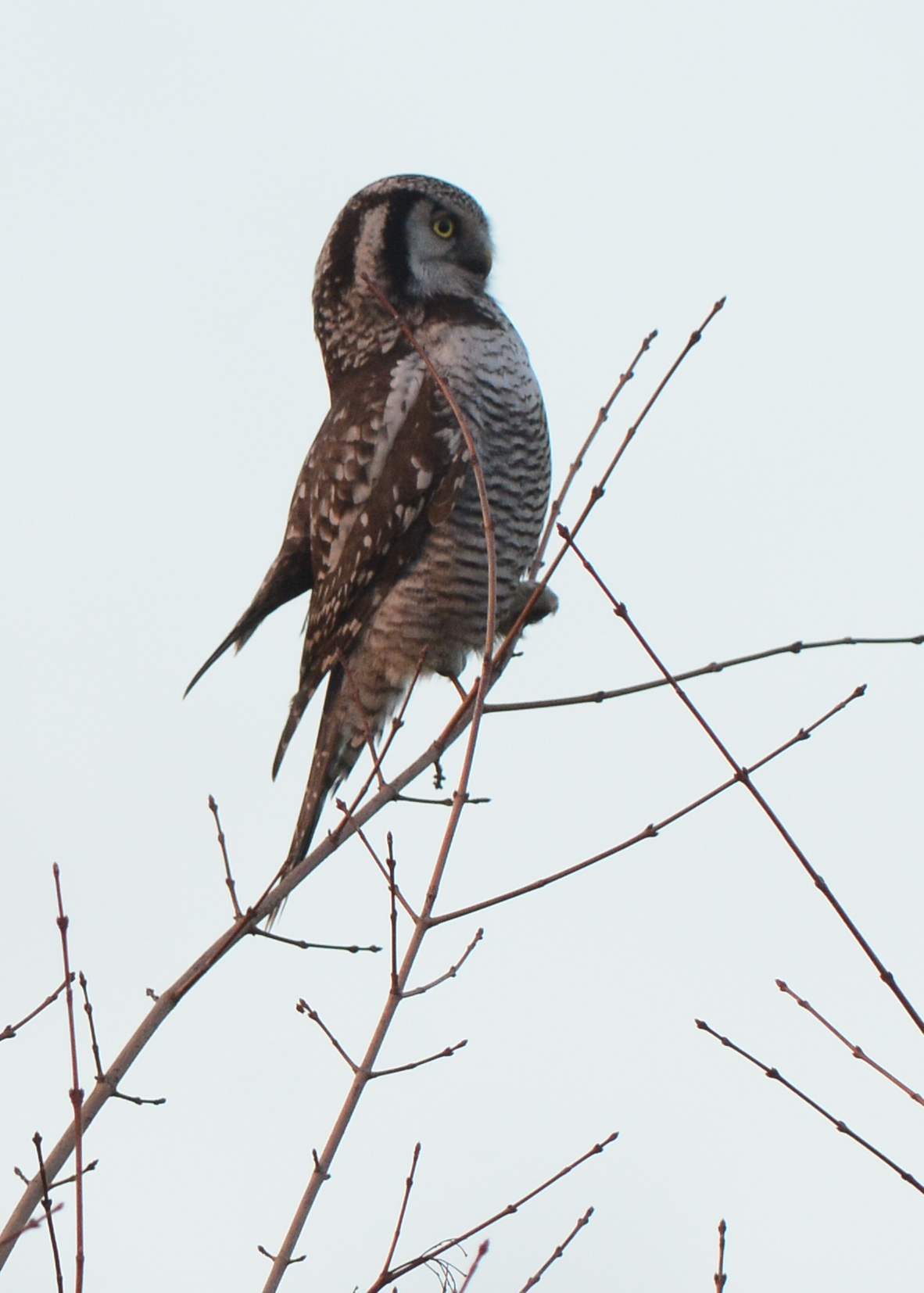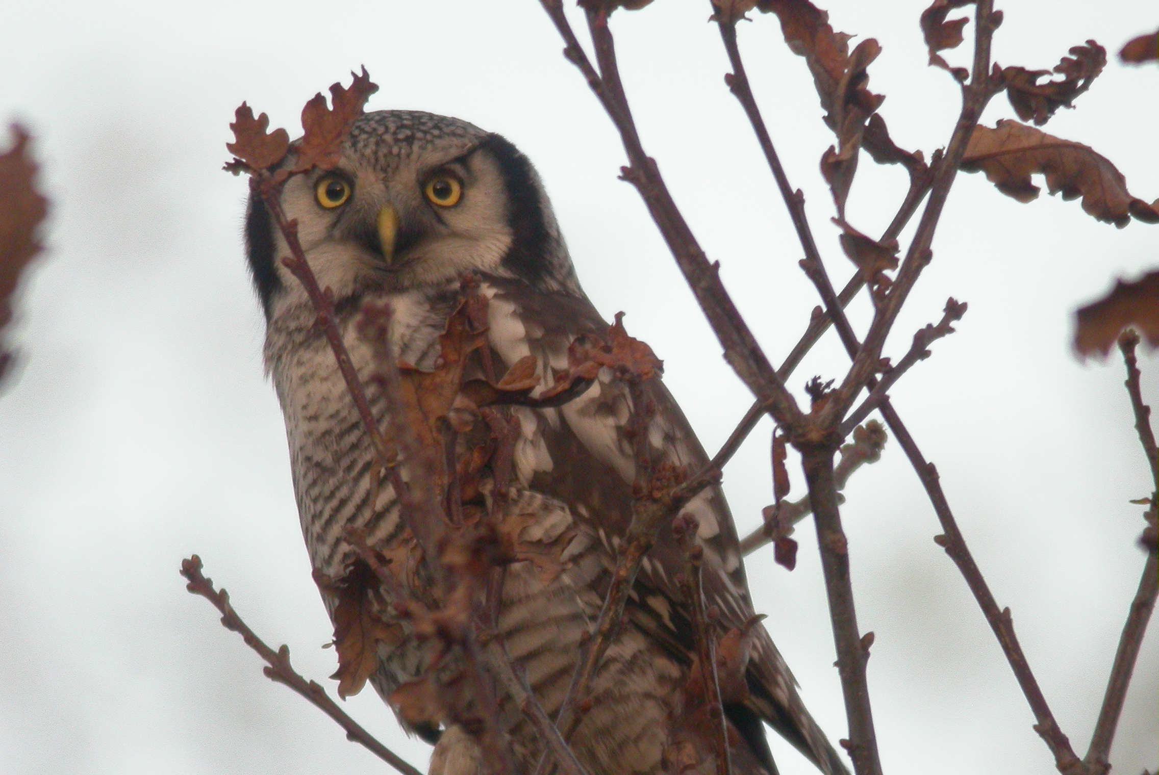 Riet van de Wouw, Mariet Mackus, Frank Meeuwissen en Bart Janssen zijn vanmiddag rond de klok van één uur naar Zwolle gereden om de bijzondere Sperweruil te zien.