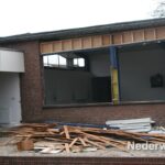 De sloop van Basisschool de Tweesprong is in volle gang. Ze zijn begonnen met de sloop en het terrein ligt inmiddels vol met sloopafval en bouwmaterialen.