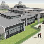 Hoe gaat het nieuwe schoolgebouw eruit zien? De impressies geven een beeld van de nieuwe ingang, de aanblik vanuit de Annastraat en vanuit de Siebenstraat.